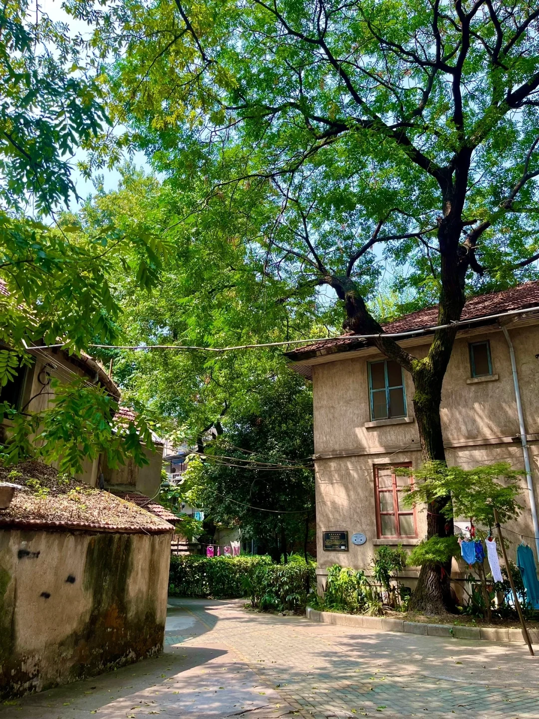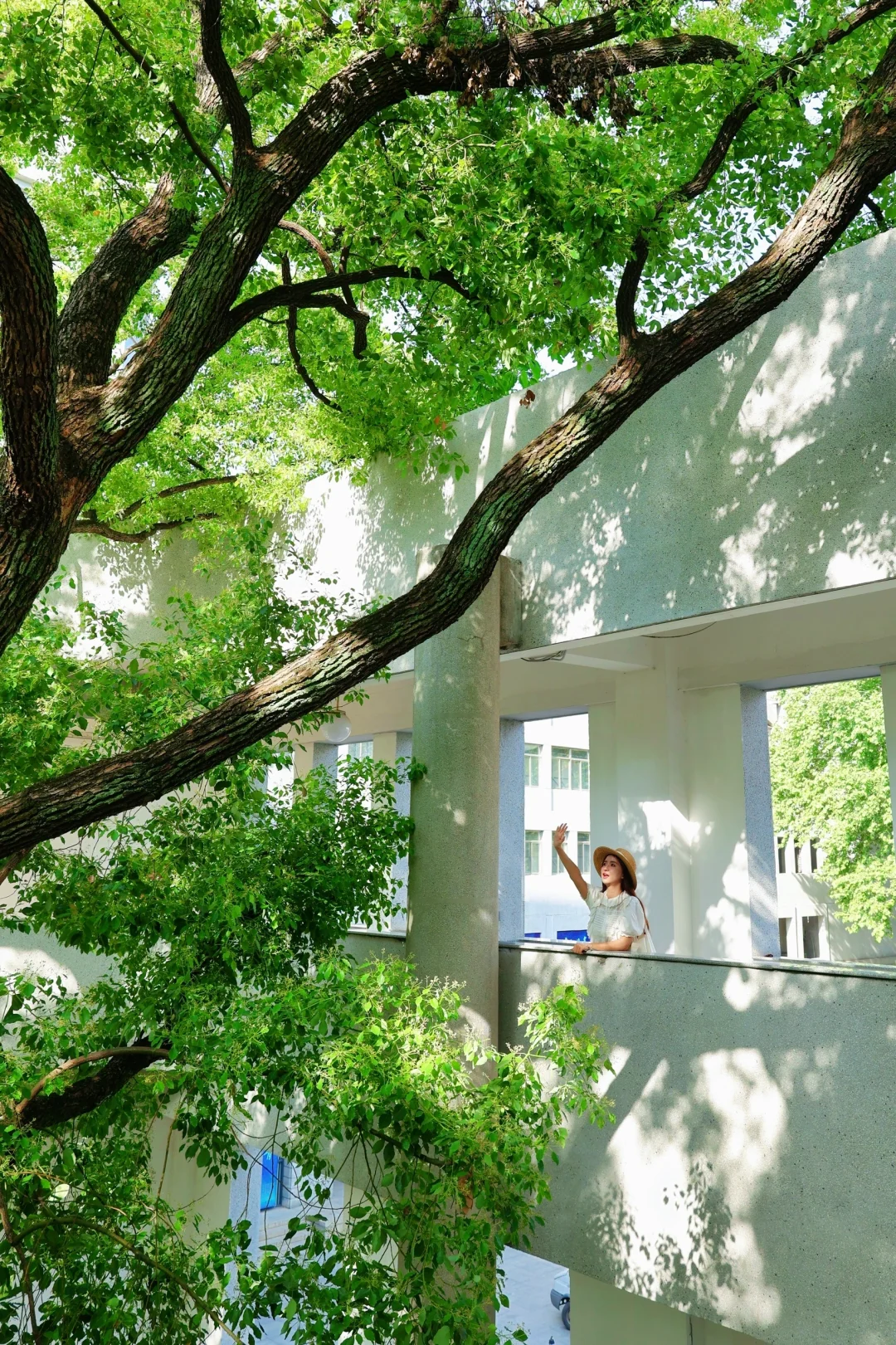 一颗大树🌳长满了整个教学楼,很有青春气息,记得有大太阳的时候去,树叶斑驳的影子很好看,在门口说拍照📷的可以进校区