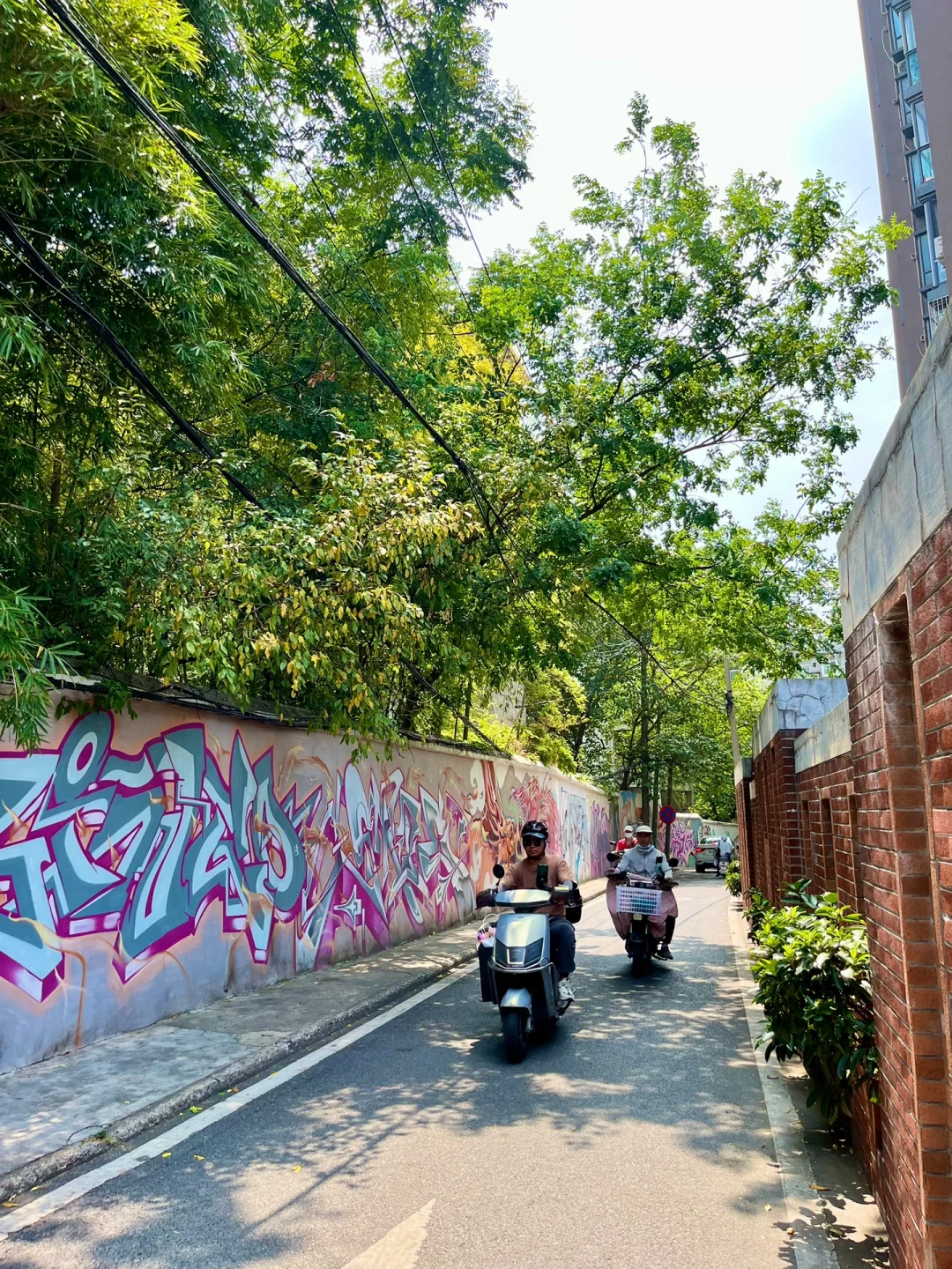 很有老武汉气息的小区,沿路都是被涂鸦还有绿树包围的墙壁