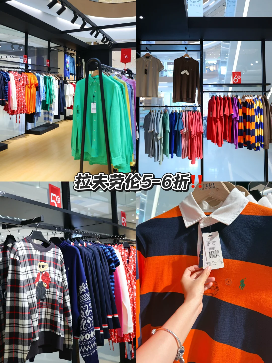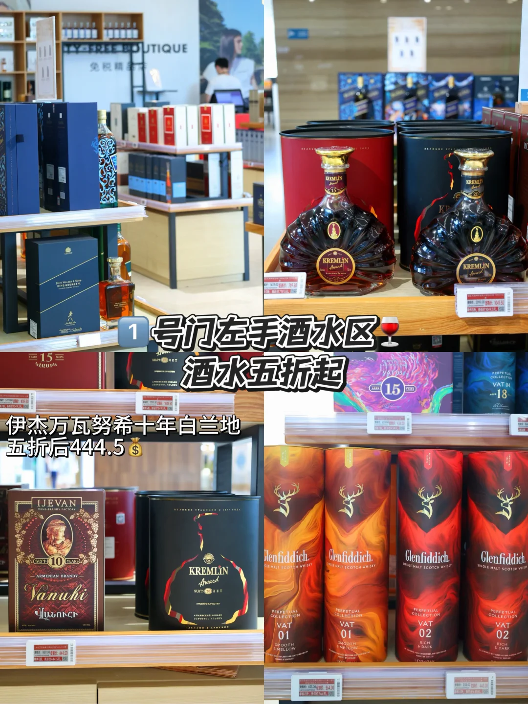 一号门进,进门左手边就是酒水区,大部分都是 5 折,送人自留都很划算!中庭拉夫劳伦的展台,5 折起,很多秋装折后只要几百块