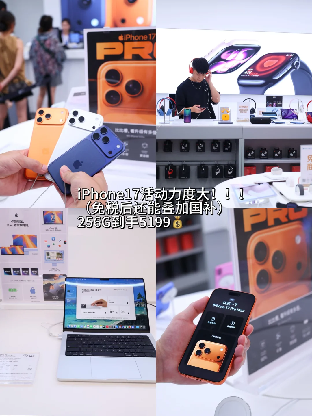 新出的 iphone17 真的狠狠心动了!想要入手的朋友注意啦,能叠加国补省不少钱!国补每周六上午 10 点半在云闪付抢,资💴有限,建议抢到就直接到店🛒哦!iPhone17 叠国补256G 到手才 5199,这价格谁看了不心动啊~