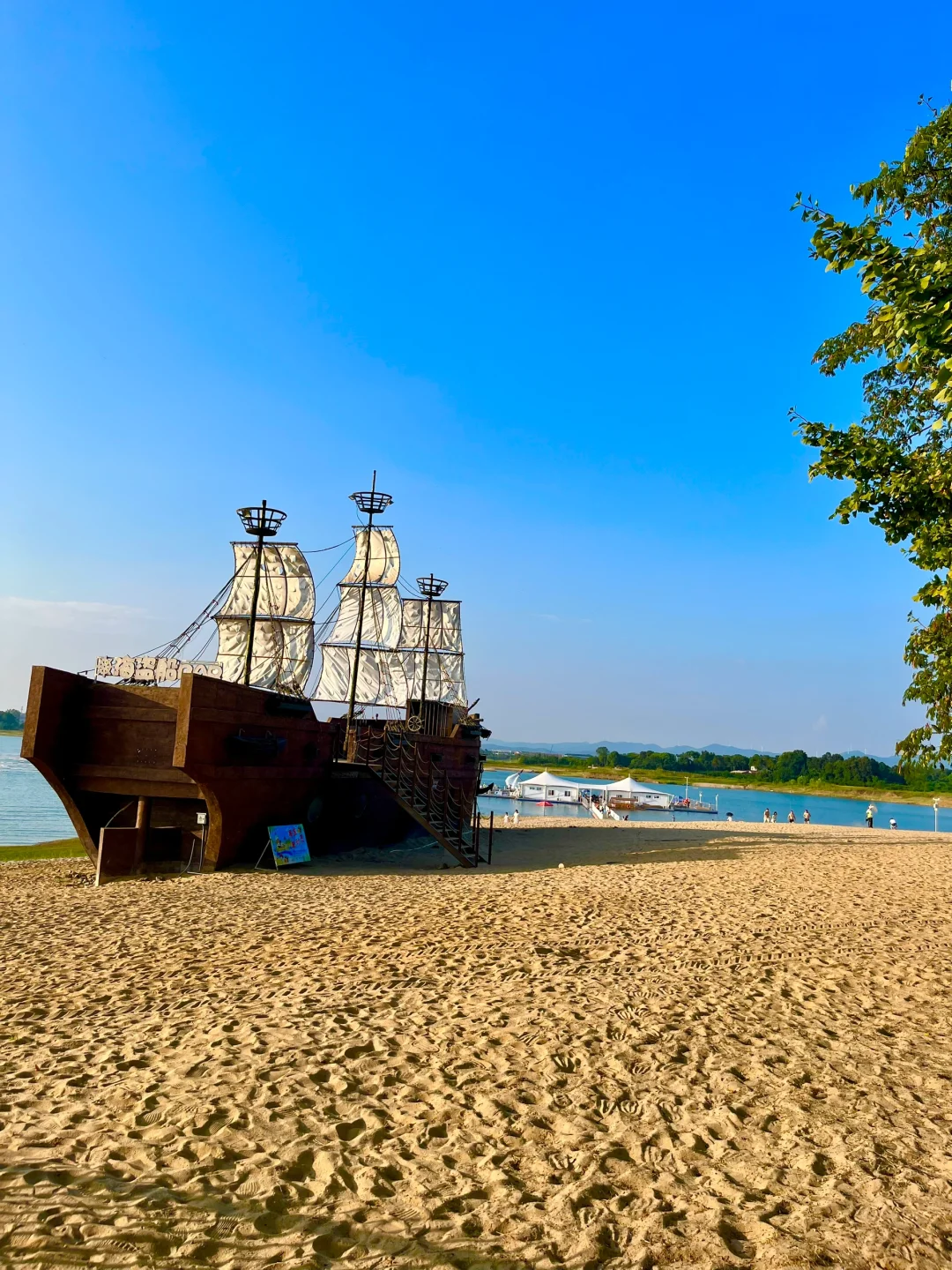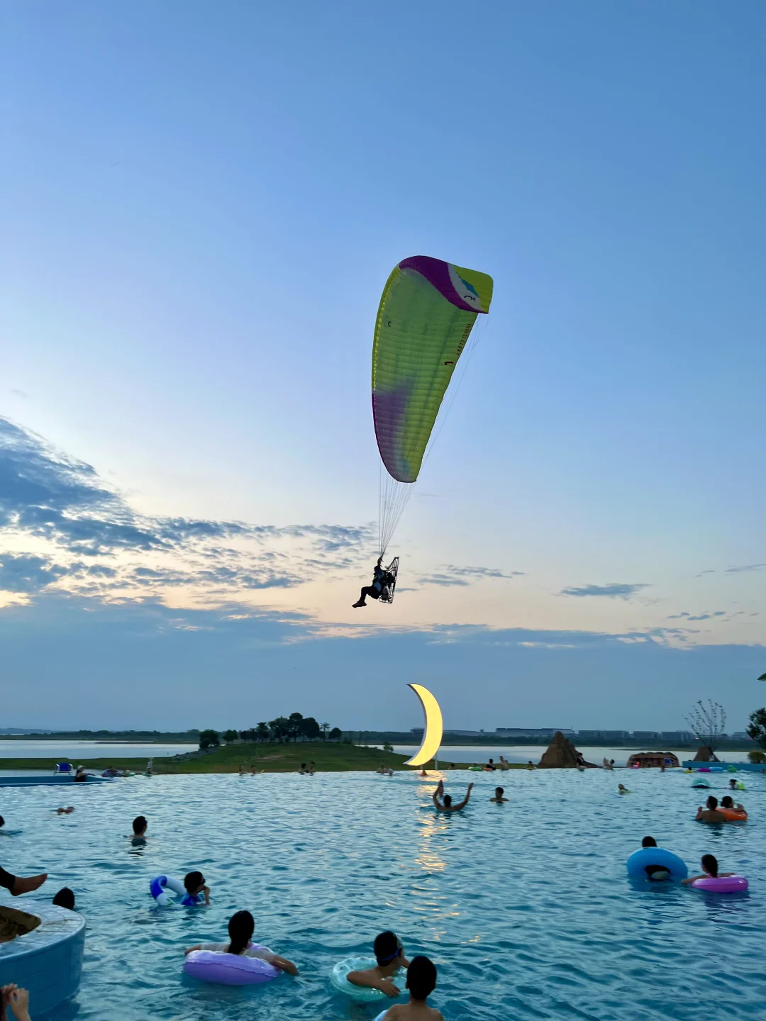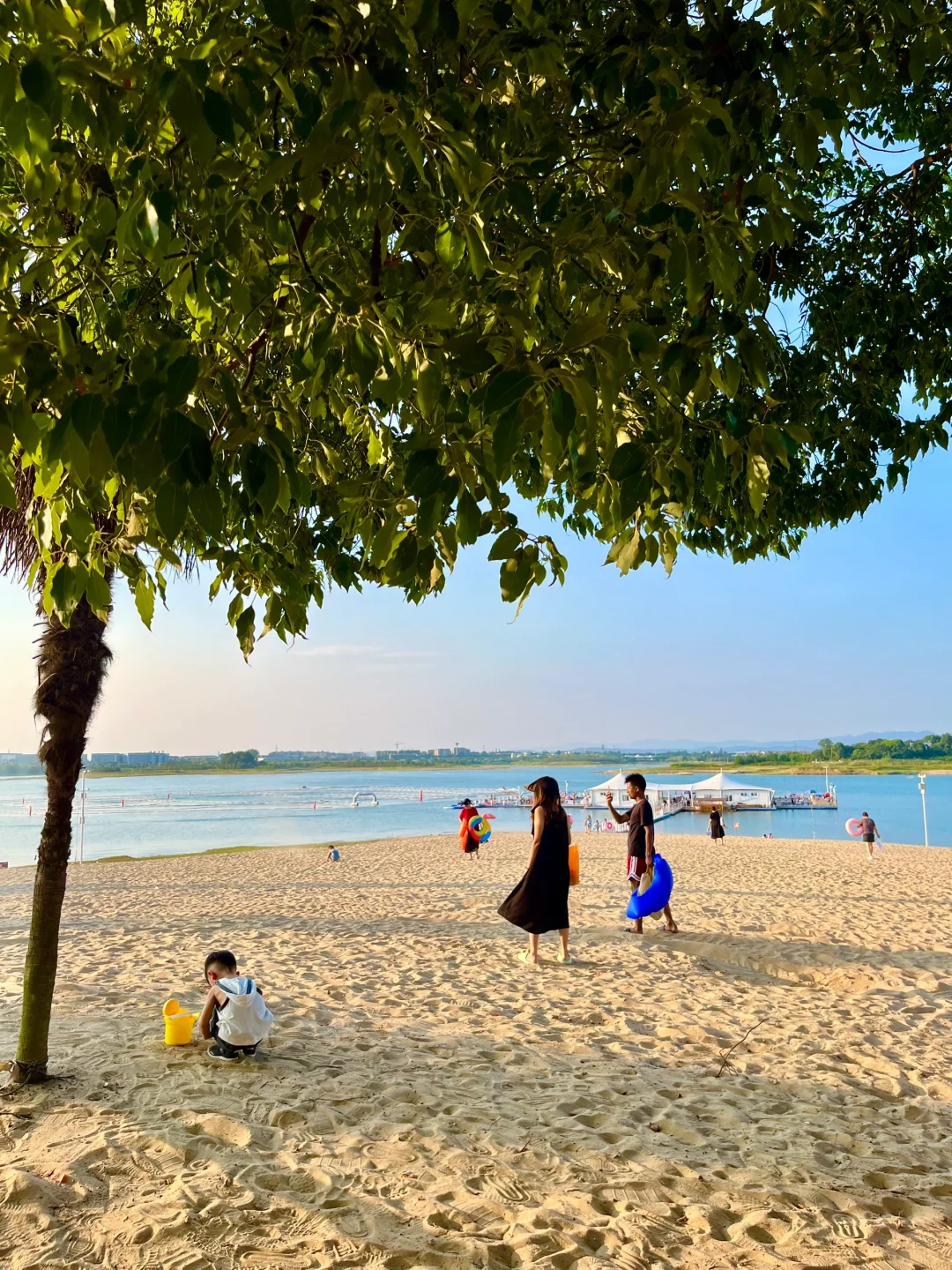 发朋友圈都以为去三亚啦! 其实连湖北都没出,武汉自驾2.5h抵达🚗 园区有泳池、沙滩🏝️、无动力乐园、热气球、滑翔伞🪂等,可玩的蛮多的 - 📍定位:漳河阳光沙滩🏖️ 🕐时间:8:30-19:30 现在泳池还没开放,沙滩开放 - ✔️沙滩里面有凉面、绿豆汤、烤肠,小卖部等,如果泳衣、游泳圈没带这里也都有 ✔️无动力乐园全天有阴,旁边就是休息区,中午很热可以来这边🌞 ✔️周边的郭场鸡不错 -