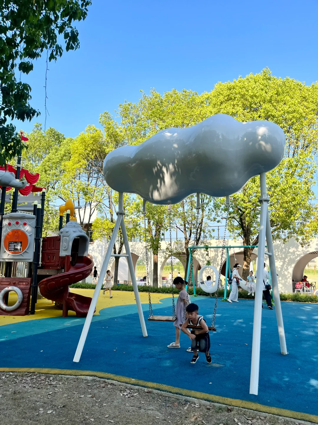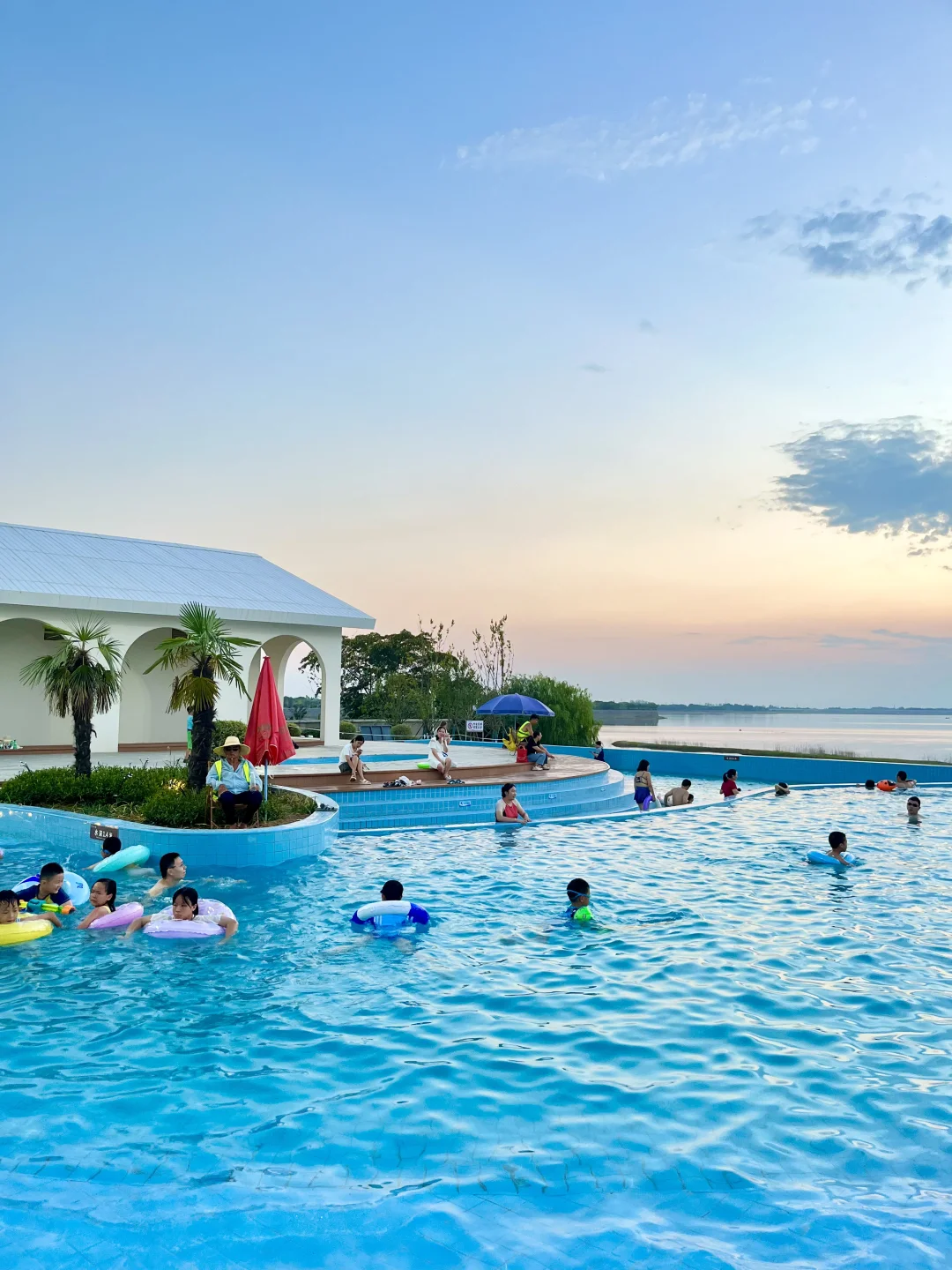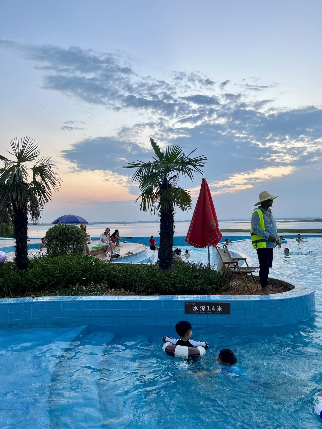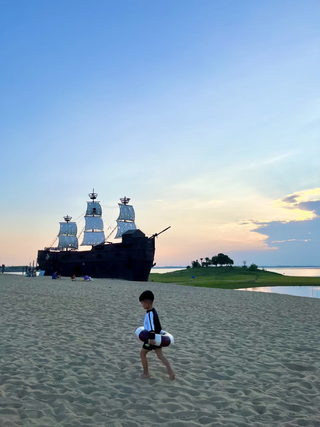 发朋友圈都以为去三亚啦! 其实连湖北都没出,武汉自驾2.5h抵达🚗 园区有泳池、沙滩🏝️、无动力乐园、热气球、滑翔伞🪂等,可玩的蛮多的 - 📍定位:漳河阳光沙滩🏖️ 🕐时间:8:30-19:30 现在泳池还没开放,沙滩开放 - ✔️沙滩里面有凉面、绿豆汤、烤肠,小卖部等,如果泳衣、游泳圈没带这里也都有 ✔️无动力乐园全天有阴,旁边就是休息区,中午很热可以来这边🌞 ✔️周边的郭场鸡不错 -