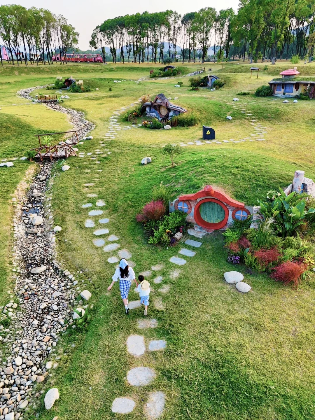 1️⃣一进门左手边就是无动力乐园,往前面走一点左手边就是zui🔥的霍比特人小屋,每一个小房子都不一样,很像童话世界!!