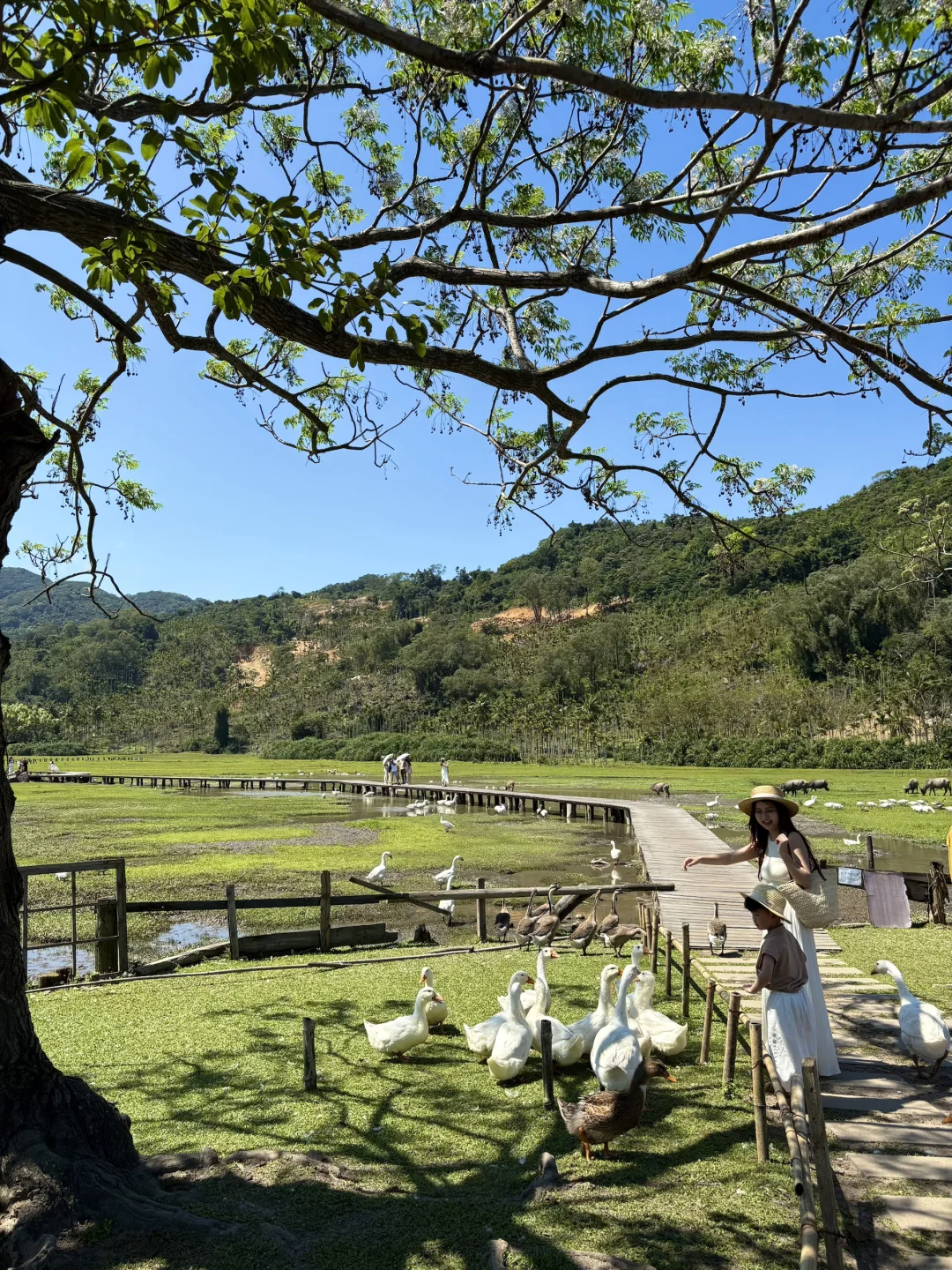 天然的🆓牧场,晴天的这里大草坪和栈道美像一幅画🖼️