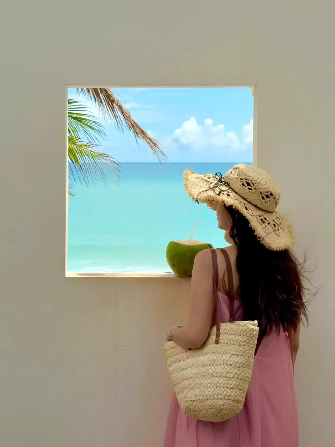 免费沙滩🏖️,这里有蓝色渐变海,人也很少!!粉色蝴蝶结🎀和相框墙🖼️都在这里,随便拍都很出片