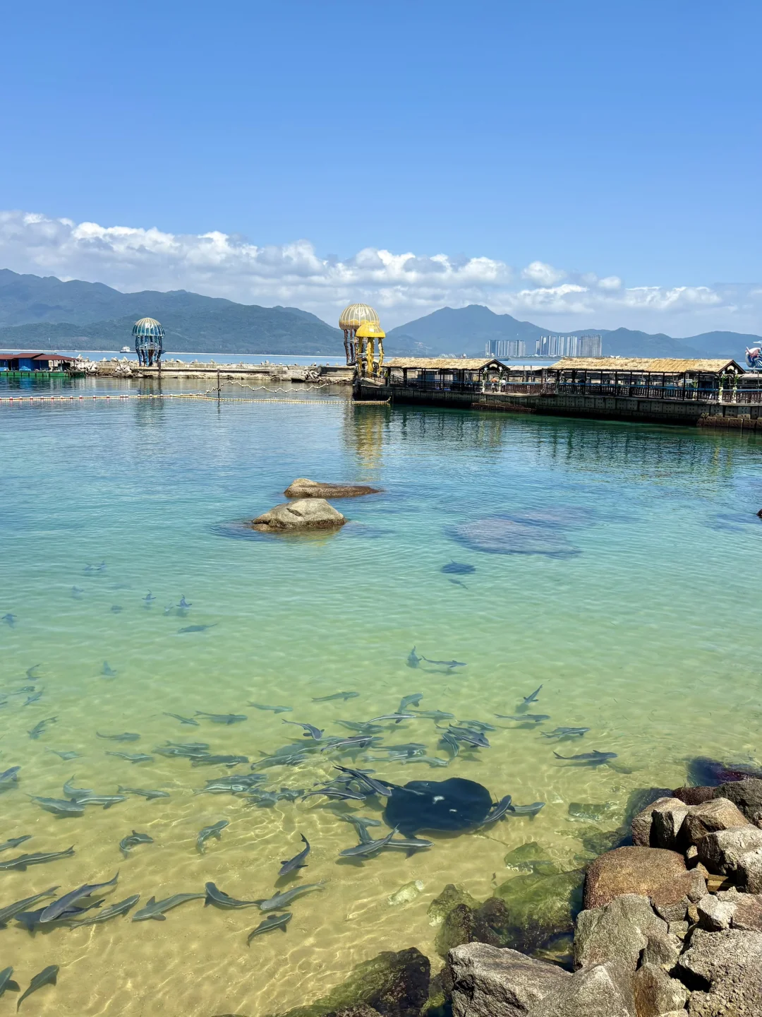 离日月湾很近,打车13分钟,岛上有绝美的玻璃海,坐游览车登到山顶真的被震撼,带娃可以去海洋剧场,看海豚🐬海狮🦭,喂魔鬼鱼、喂海龟🐢,喂一百多斤的龙胆石斑鱼(喂魔鬼鱼要下水,记得多带一套衣服)