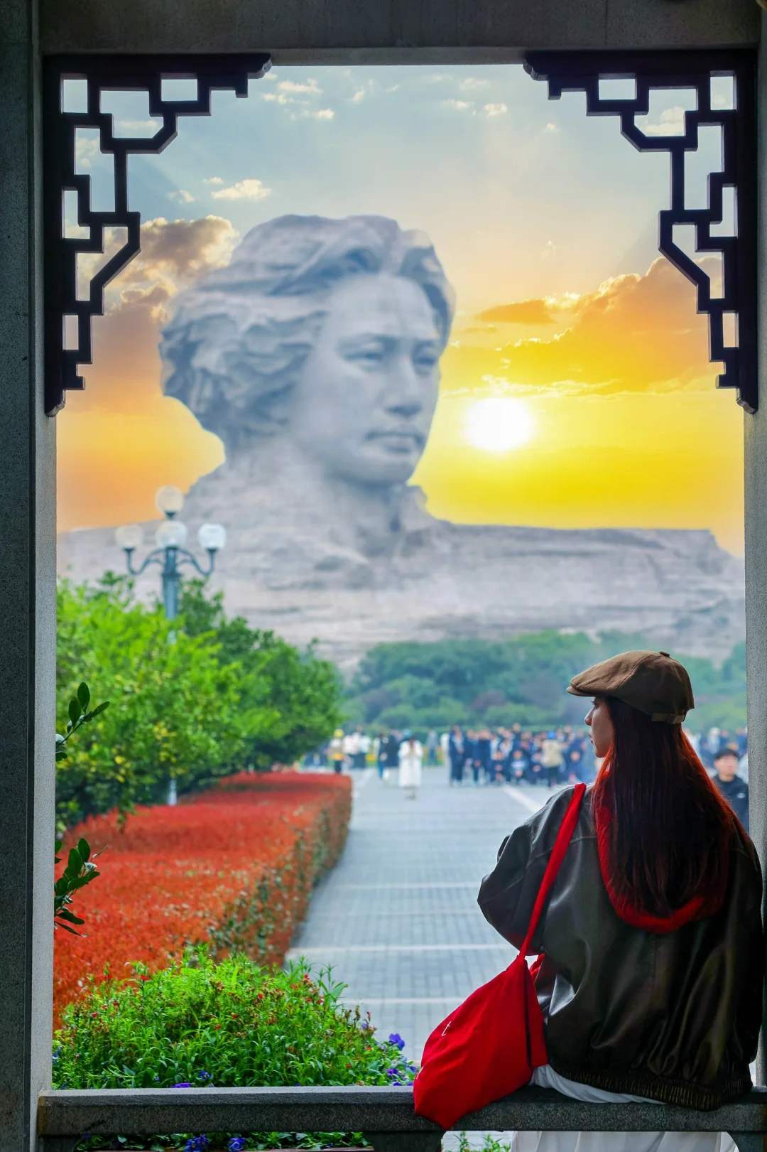 雕像处人会很多,想要避开人群,可以走到望江亭处,以走廊为画框🖼️拍摄