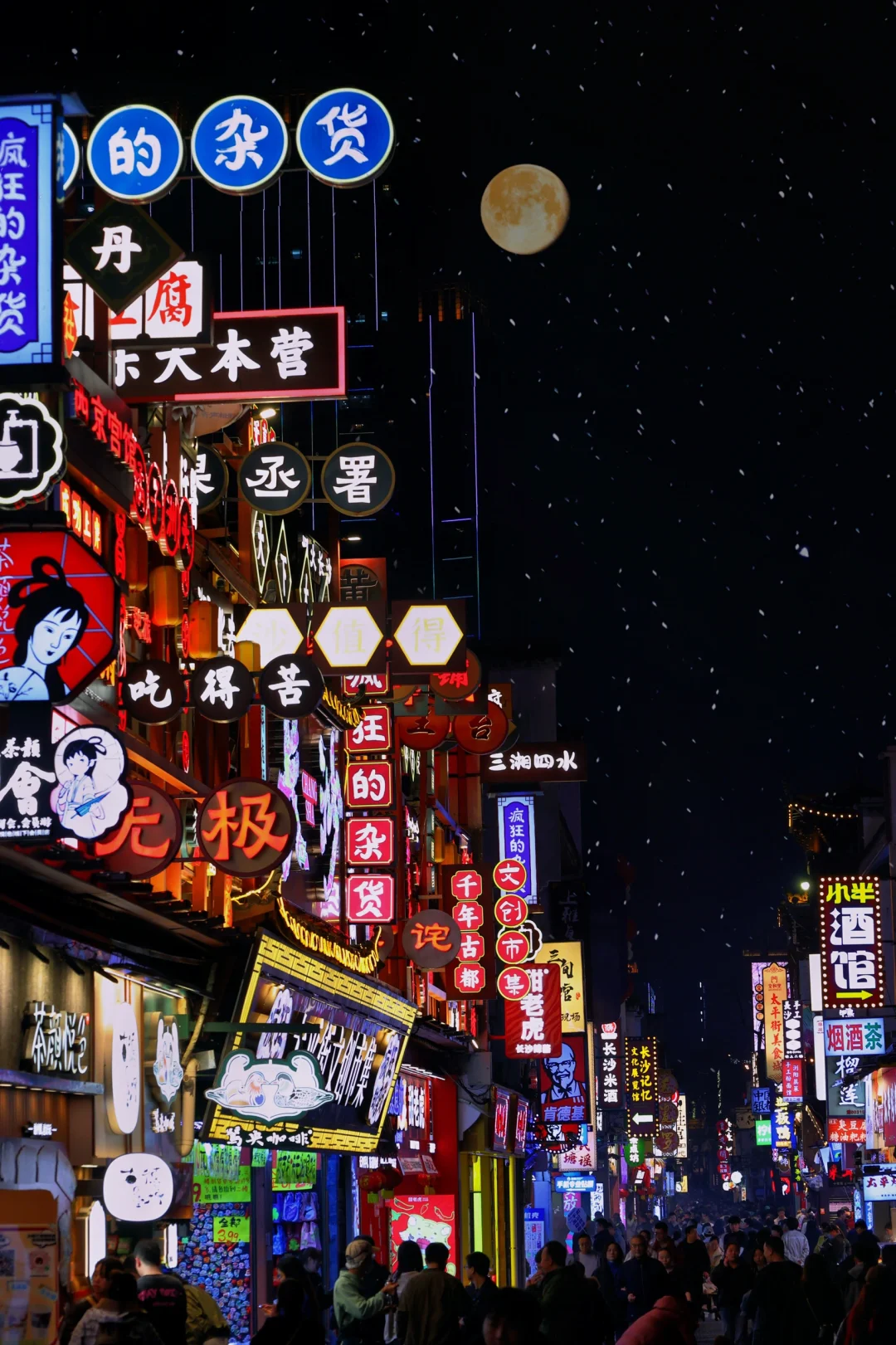 长沙经典老街,晚上亮灯后很美,笨萝卜也在这