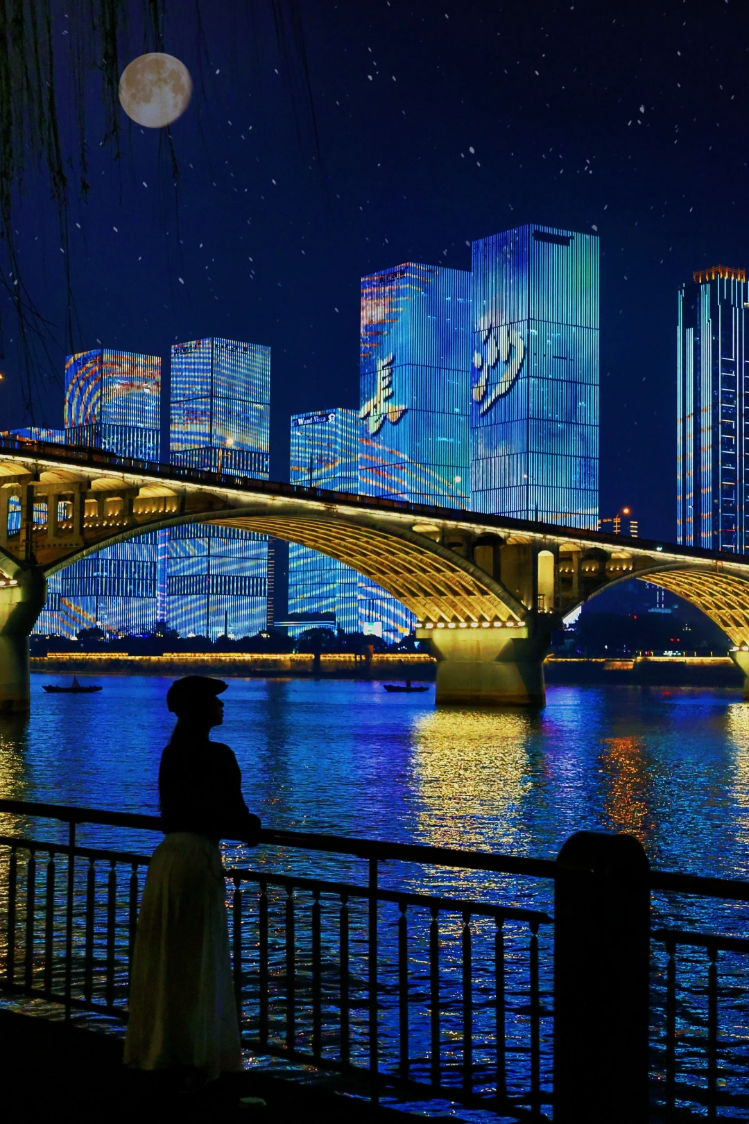 地铁🚇2号线橘子洲头青莲站出来旁边就是,灯光秀时间19:00-23:00
