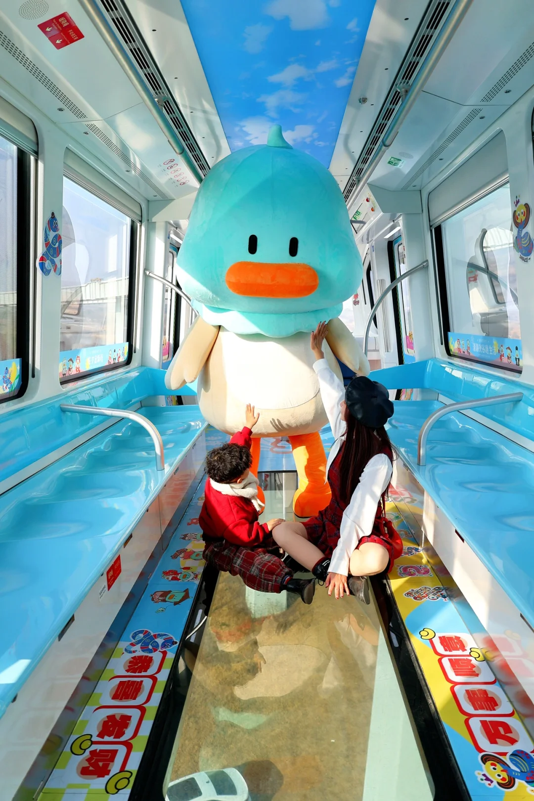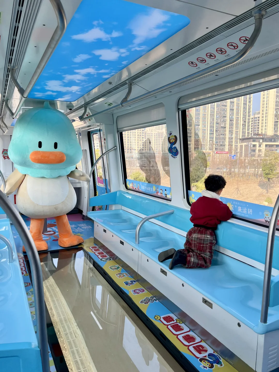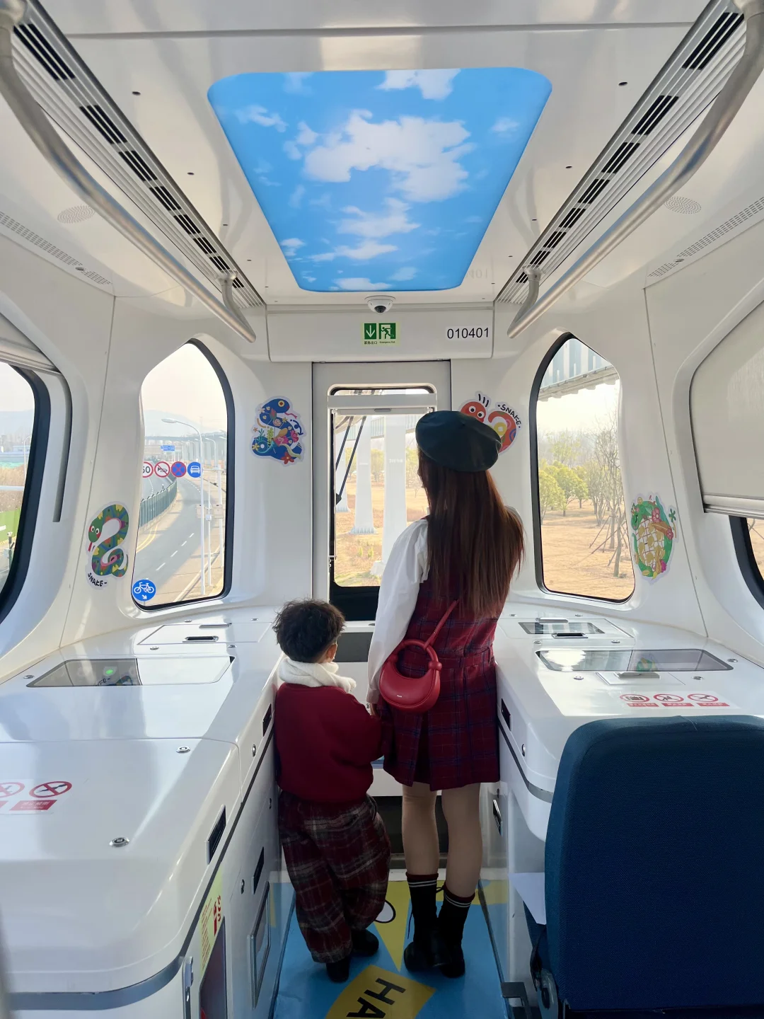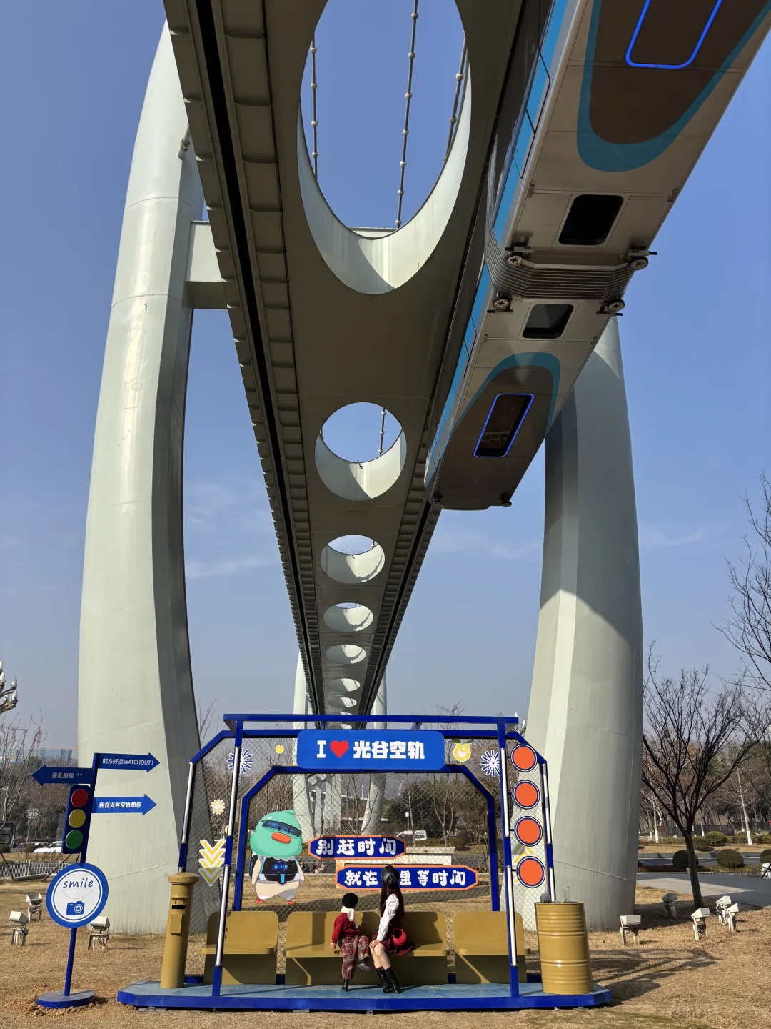 ✅选择高新大道站上车,可以在大草坪上感受空轨从头顶穿过,很有趣的一次体验,小朋友可以趴在透明的底部看风景🪁