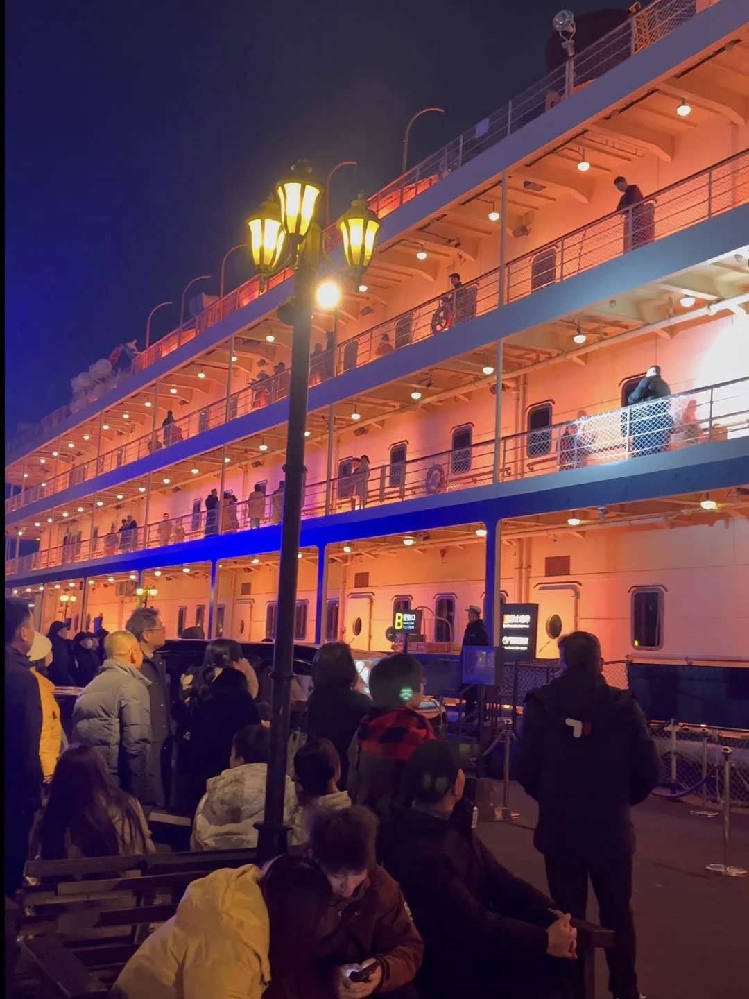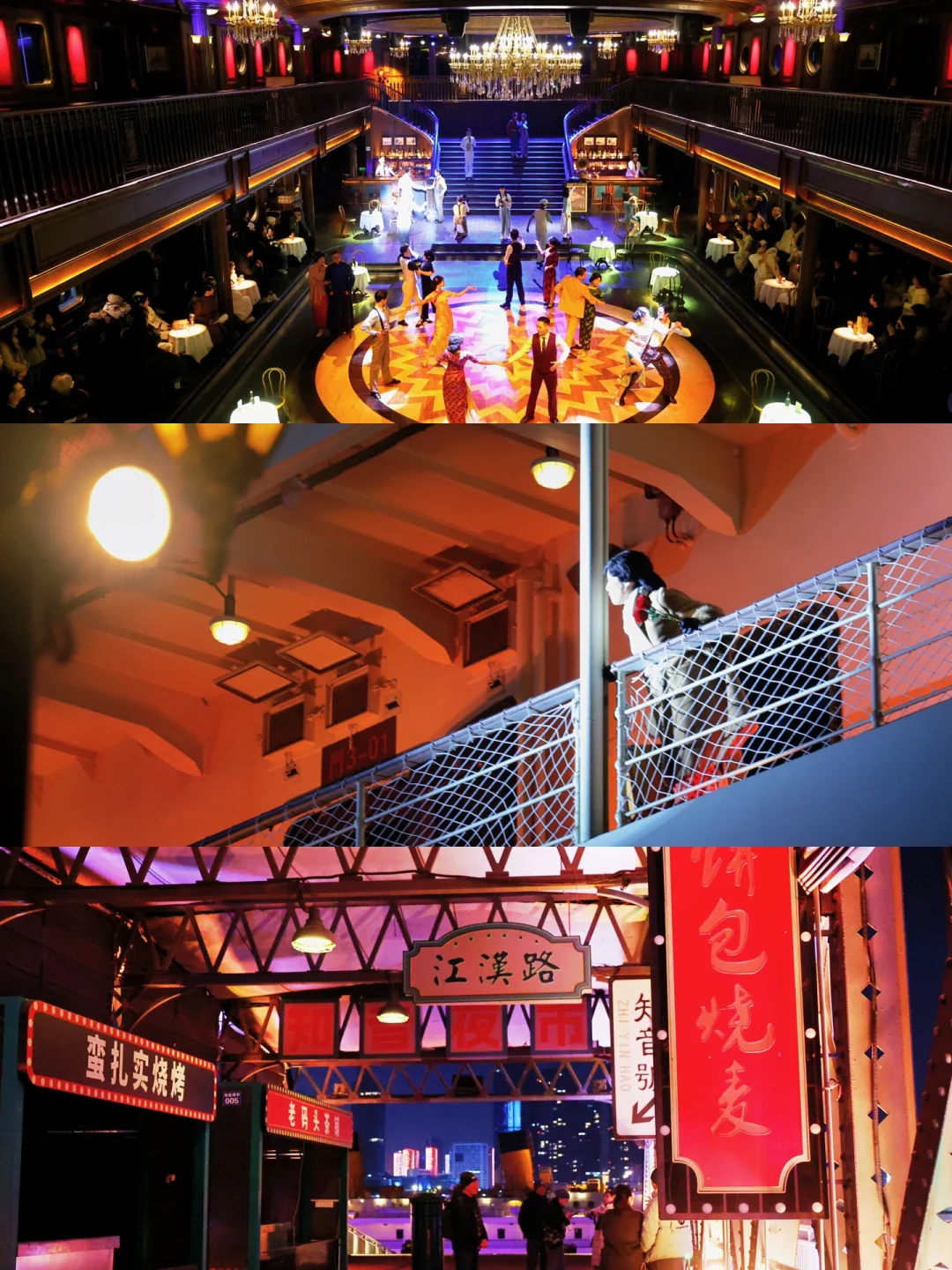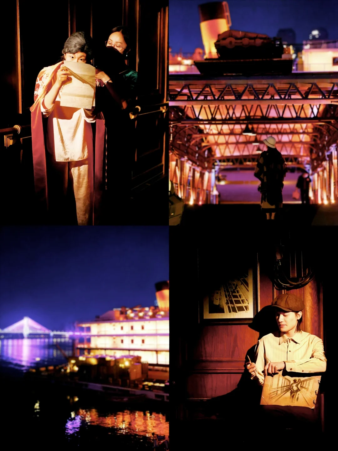 总有想来武汉的朋友问我: 武汉的晚上该去哪玩⁉️ 想欣赏武汉的夜景🌃又想丰富多彩一点 那么不去这里真的会后悔🛳️ 从一踏进大门的那一刻我们就感觉真的是里面的一员 各种演员,卖报童、留洋回来的夫妻、女学生等 沉浸式的表演仿佛回到过去的大武汉‼️ ————————🚢 🛳️游玩攻略: ✅晚上七点开始检票入场,🎫处旁边有报纸📰可以拿着凹造型 ✅ 在进大门后有妆造处,可变装,也🉑️像我一样大衣围巾帽子,保暖穿搭 ✅进门后就可到处拍拍拍,黄包车、长椅等,会有很多演员混在游客中,代入感很强‼️‼️ ✅上船后,找到自己的船舱号,进入船舱,然后晚上有两场表演,一场舞厅、一场jiu🍷吧,演员们会讲述他们那个年代的故事还会和我们互动,每个船舱里会有不同的演绎 ✅别忘了来到走廊边,欣赏江对面的美景‼️ —————————📰 一张船🎫,品尝人间百味 -