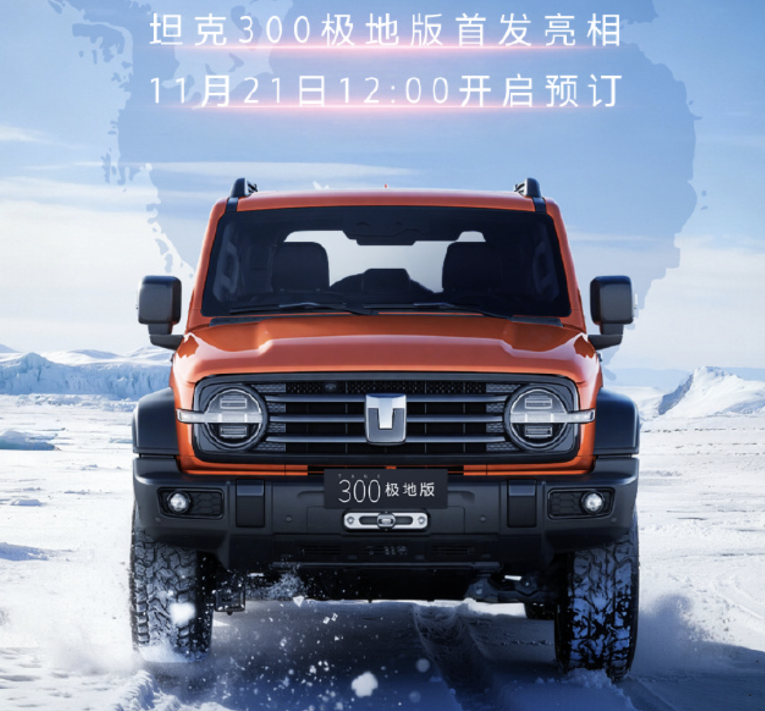 刚刚 发博称,坦克300极地版将在 正式亮相并开启预售。坦克300柴油版曾于2025年10月11日正式被中国极地研究中心授予“中国南北极考察选用产品”称号,以原厂量产车身份(无特殊改装)登陆南极长城站,承担科考物资运输、通勤保障等任务。此后官方发布了坦克300极地版的共创计划,收集网友的共创想法和需求,坦克300极地版即为之前用户参与共创的一款车型。