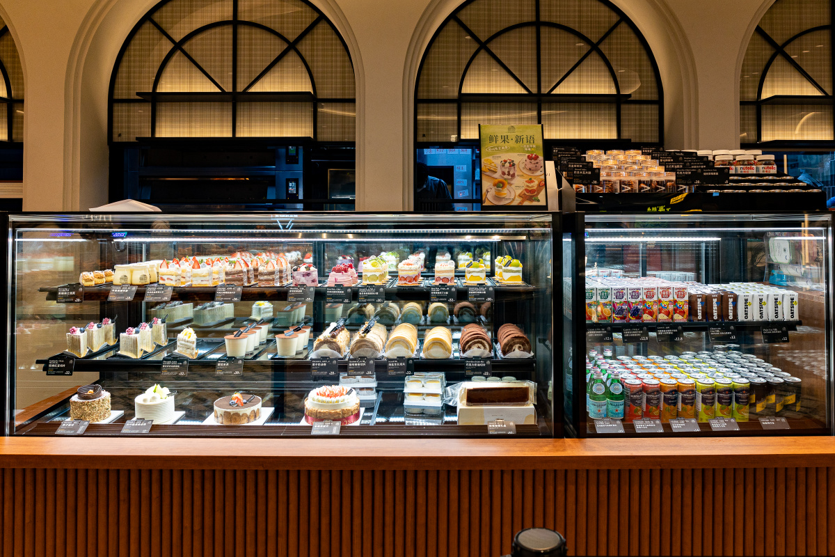 门店除烘焙产品之外,还配有专业咖啡、茶饮供应并提供座位区,真正意义上将生活方式与烘焙结合在线下空间,不仅是购物,更可以在门店享受空间与精致美食。
