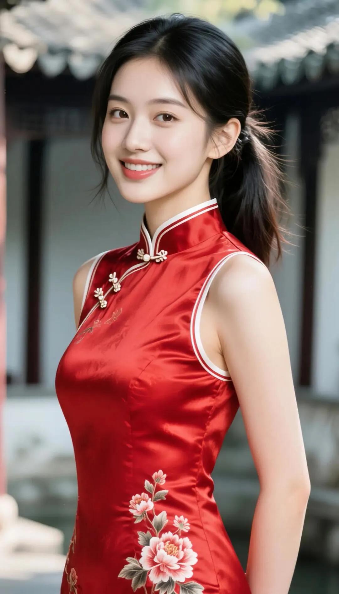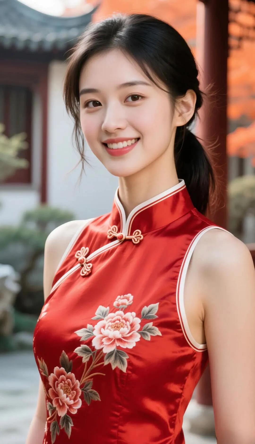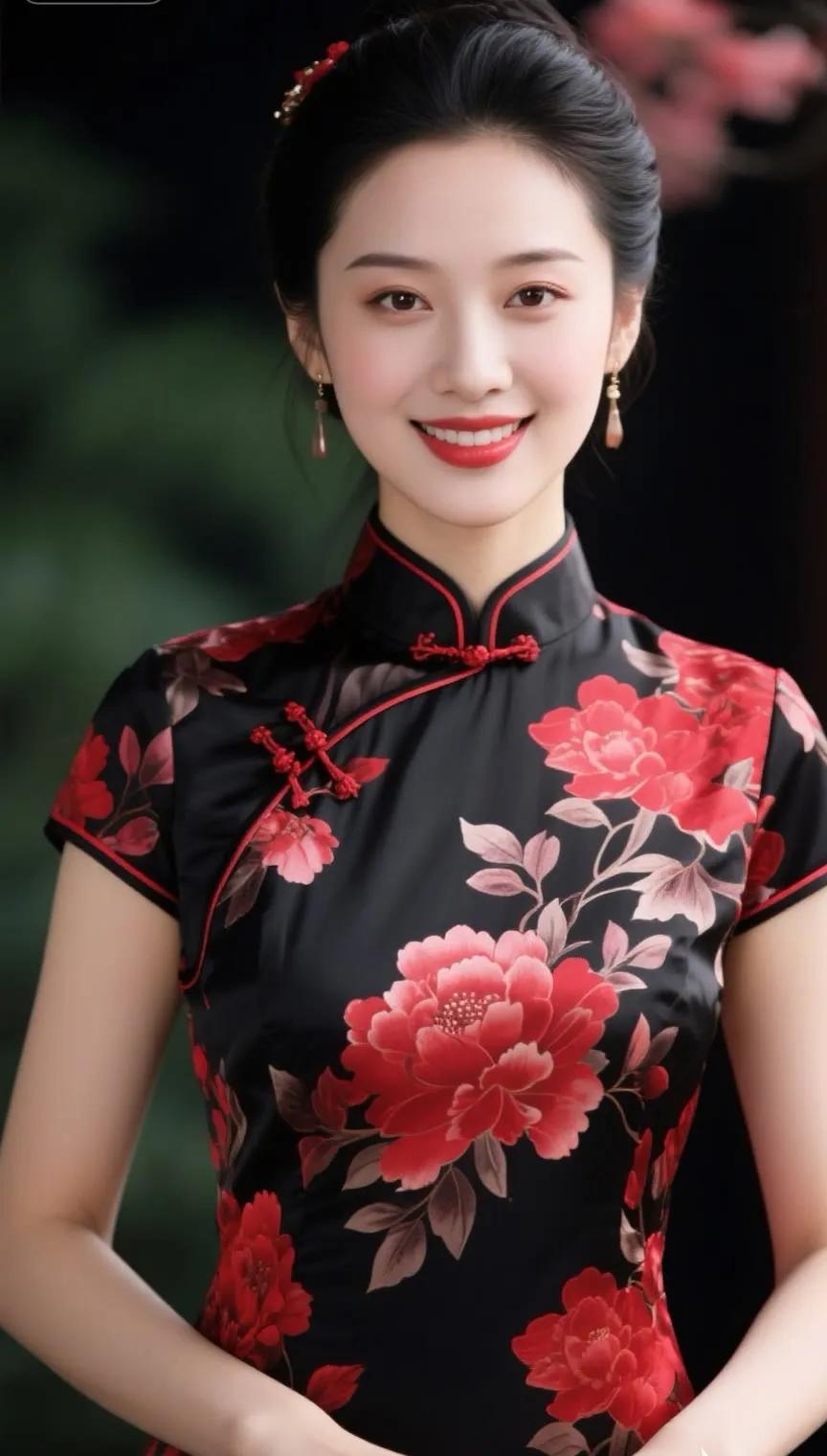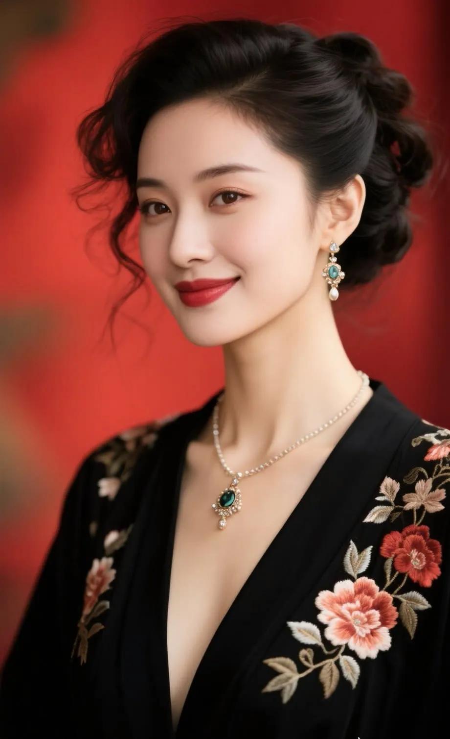 温柔甜美的微笑,精致的妆容和优雅的耳饰,散发着迷人的魅力。