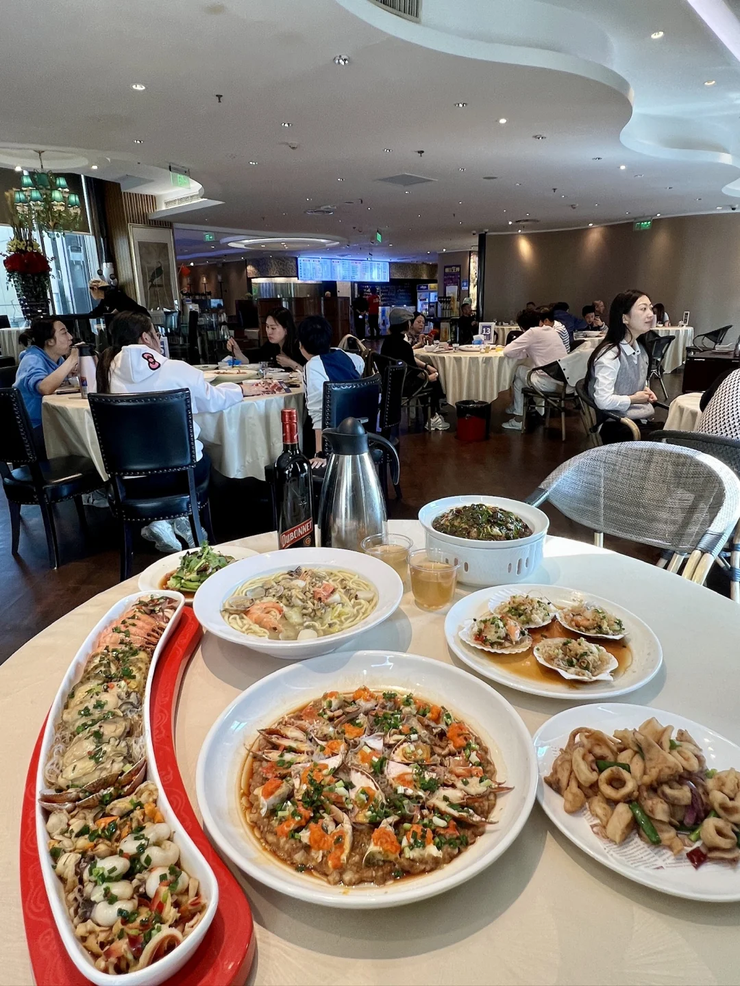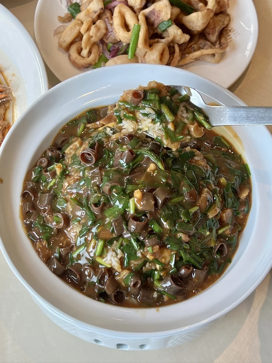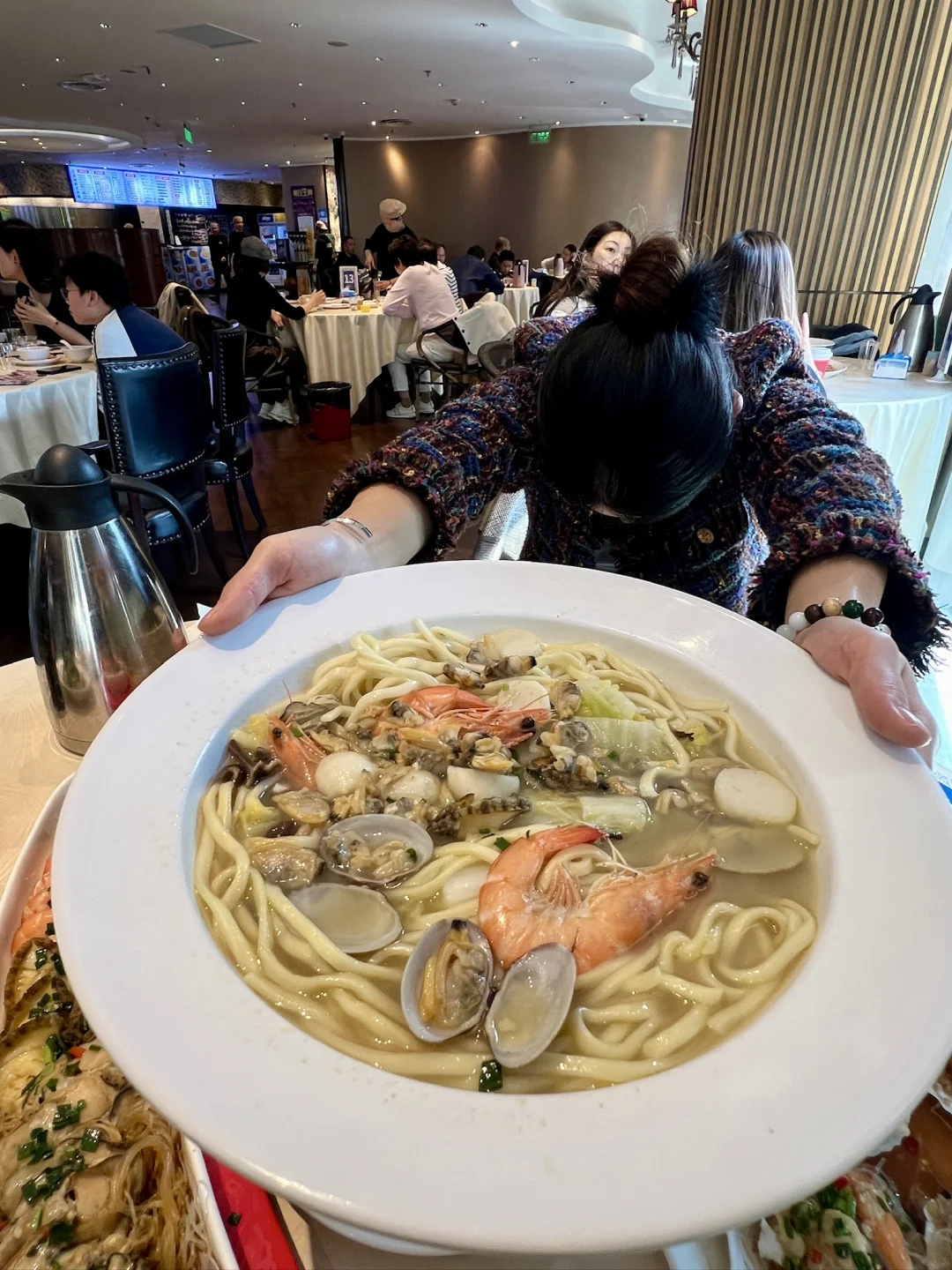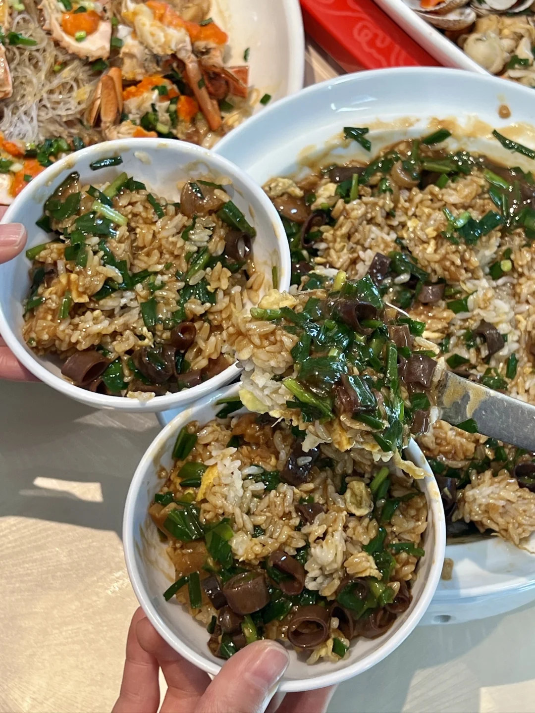 这是上海市区的物价吗!!海肠捞饭才79r,脆爽鲜嫩,黏糊糊超级美味😋红膏蟹蒸肉饼鲜嫩醇香,宁波十八斩做法hin特别,八鲜过海、生蚝很新鲜,全家福海鲜面每口都是料,好适合聚餐!上海海鲜上海探店