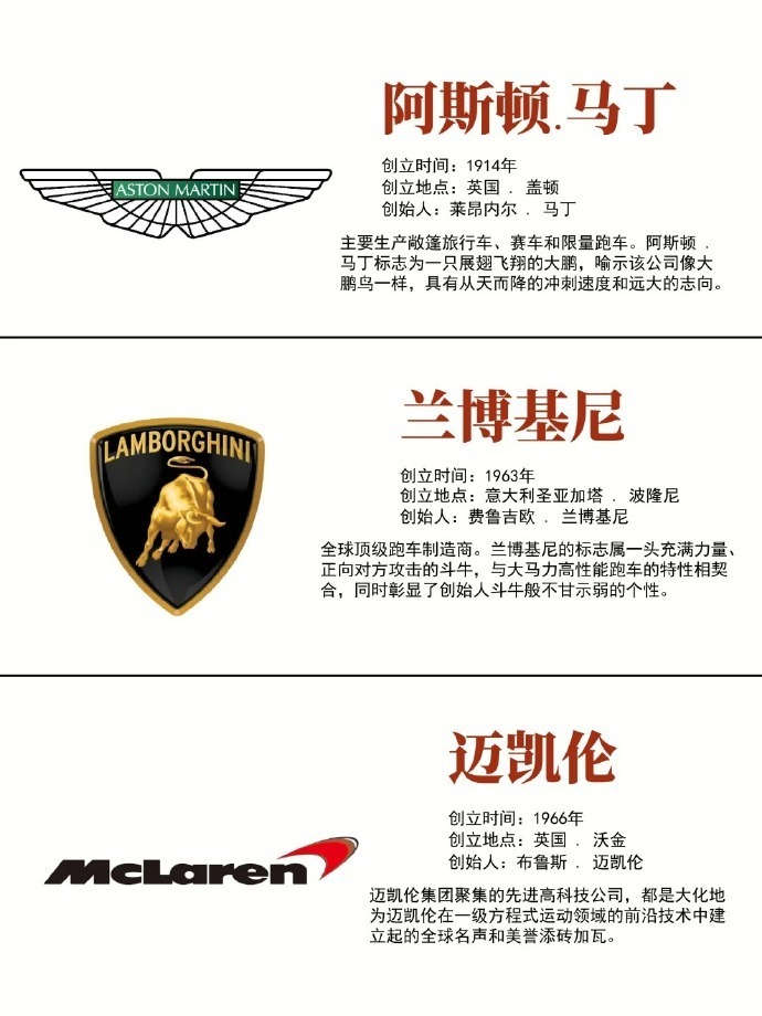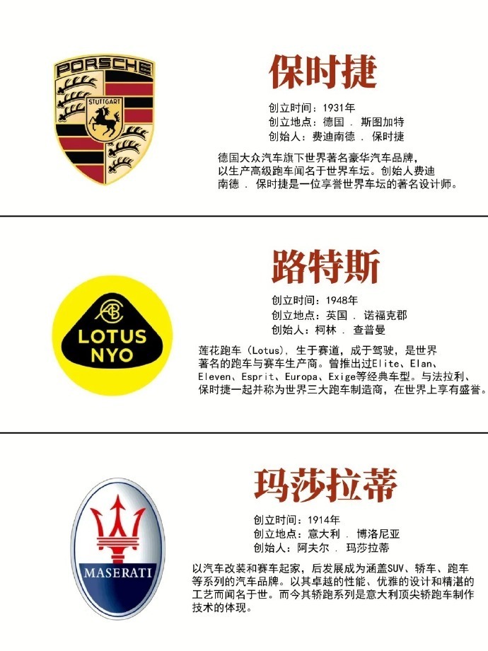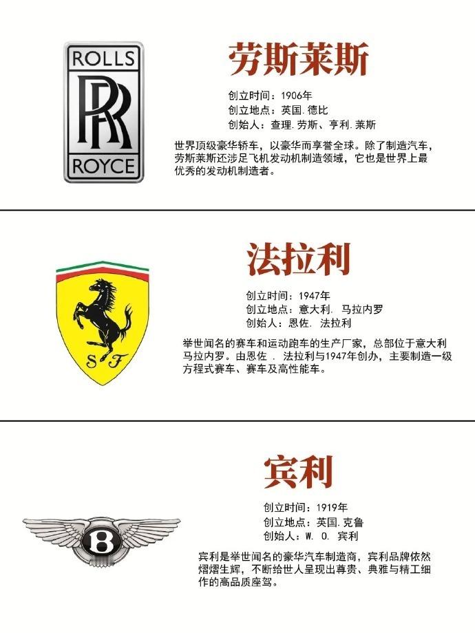 全球十大豪车品牌等级全球排名前10的豪车品牌有哪些↓1 劳斯莱斯/英国/1904年2 宾利/英国/1919年3 保时捷/德国/1931年4 法拉利/意大利/1939年5 兰博基尼/意大利/1963年6 迈凯伦/英国/1963年7 阿斯顿马丁/英国/1913年8 布加迪/法国/1909年9 帕加尼/意大利/1992年10 柯尼塞格/瑞典/1994年