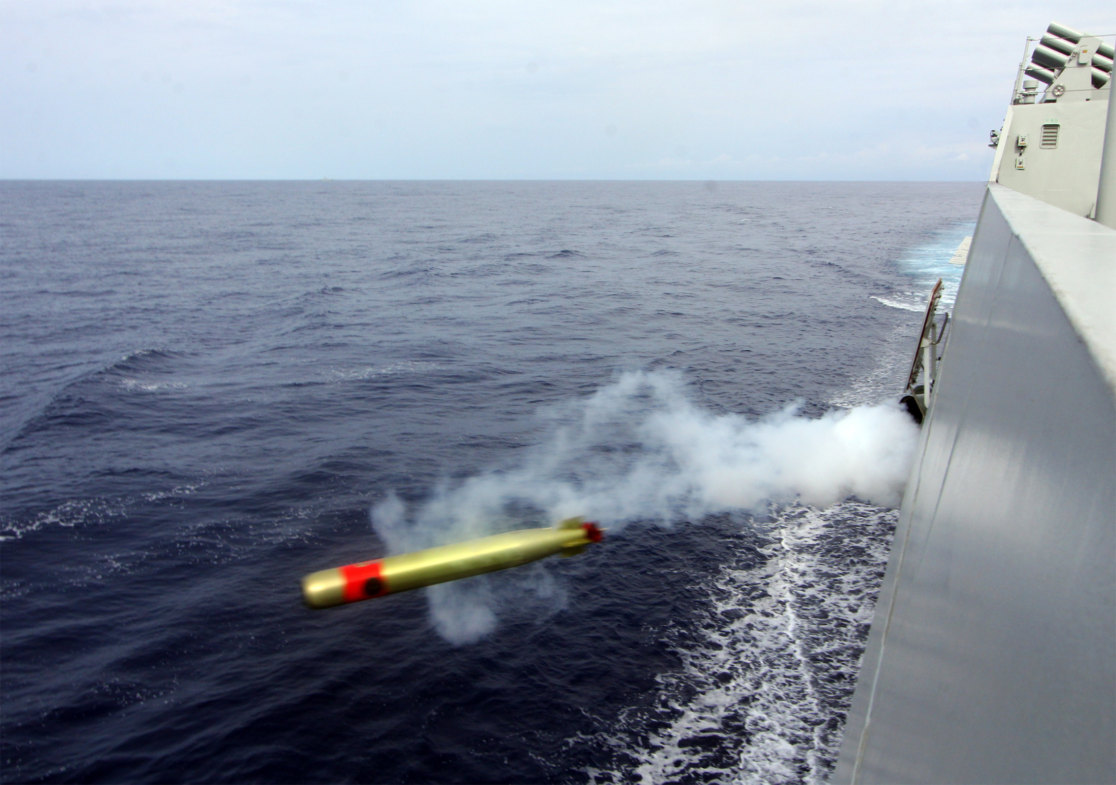 从细节上看,003航母上的新型6联发射器很大概率还是标准的后装式324mm口径发射管,很可能具备完整的鱼雷发射功能,不过安装方式和驱护舰上明显不同。同样处于收纳状态下时,驱护舰上的鱼雷发射管是默认朝前的,而在航母上则对着后面。毕竟航母上除了舰载机以外的武器都是防御性的,003不太会主动去追击潜艇,潜艇本身也不大可能冲到轻型雷的射程内开火。重型潜射鱼雷偷袭的威胁大概率来自后半球,更不用说有些潜在对手还使用尾流自导鱼雷。当然也有所取舍,由于该处舷台的布局,在这个安装位置默认朝后会让装填的时候稍微麻烦一点。美国航母上试装的反鱼雷鱼雷系统用的是固定不可调的发射管,默认对着侧面。这样发射器结构倒是简单了,但是不能转到更准确的威胁来袭方向,而需要默认角度打出去的鱼雷自己调整角度。如此一来非优化的射击路径不仅额外消耗鱼雷的能量,还要花费更多时间来转向对准目标,甚至带来了更大的近距射击死角,不利于最大化利用拦截窗口。作为近防武器使用时,发射装置直接指向目标显然更有利。美国人用的是一种小直径专用反鱼雷鱼雷,这个选择比较让人匪夷所思,航母和大型舰艇上完全有足够的空间,并不需要做得极为紧凑。选择小直径压缩了弹药的体积,会让设计难度增加,并束缚改进的潜力。同样的技术条件下,标准尺寸可以获得比小尺寸更高的性能。专用的小直径规格通用性差,会限制多用途能力,还给后勤添麻烦,想要实现更丰富的功能就得重新按照小直径开发新弹药。小直径利于增加备弹的优势在大型舰艇上也不明显,唯一确定的好处是,如果需要手动再装填,小鱼雷会更容易抬起来。无论从哪种角度看,我们的新发射器都优于美国的设计。新6联如果采用324mm规格,可发射Yu-12轻型反潜鱼雷,可向下兼容Yu-7库存,还能发射性能不必妥协的反鱼雷鱼雷(或Yu-12直接具有反鱼雷能力?),如果配备自航式诱饵,也能在标准尺寸下获得更长的续航时间和更佳的诱骗效果。哦对了,美国航母上的那套东西搞得很不顺利,应该是要凉了。