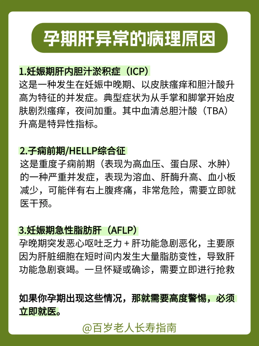 而出现病理性异常,那就一定要注意了,诸如妊娠期肝内胆汁淤积症(ICP)、子痫前期/HELLP综合征、妊娠期急性脂肪肝(AFLP),这些都要马上就医。