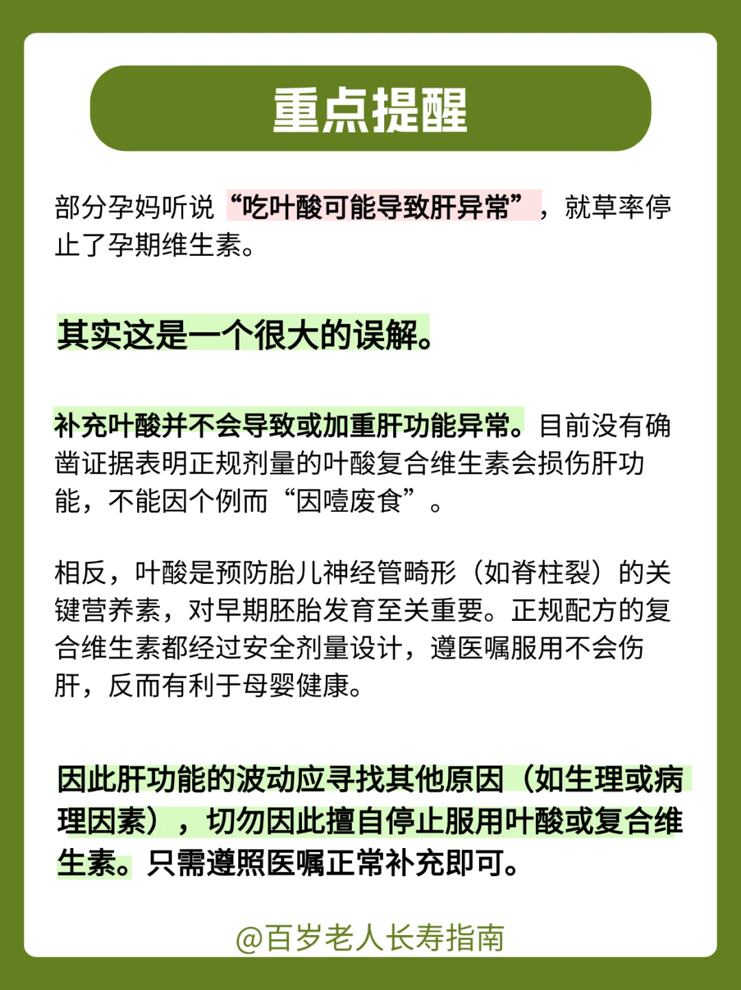 [向右R]补充叶酸并不会导致或加重肝功能异常。相反,叶酸是预防胎儿神经管畸形(如脊柱裂)的关键营养素,对早期胚胎发育至关重要,因此切勿擅自停止服用叶酸或复合维生素。