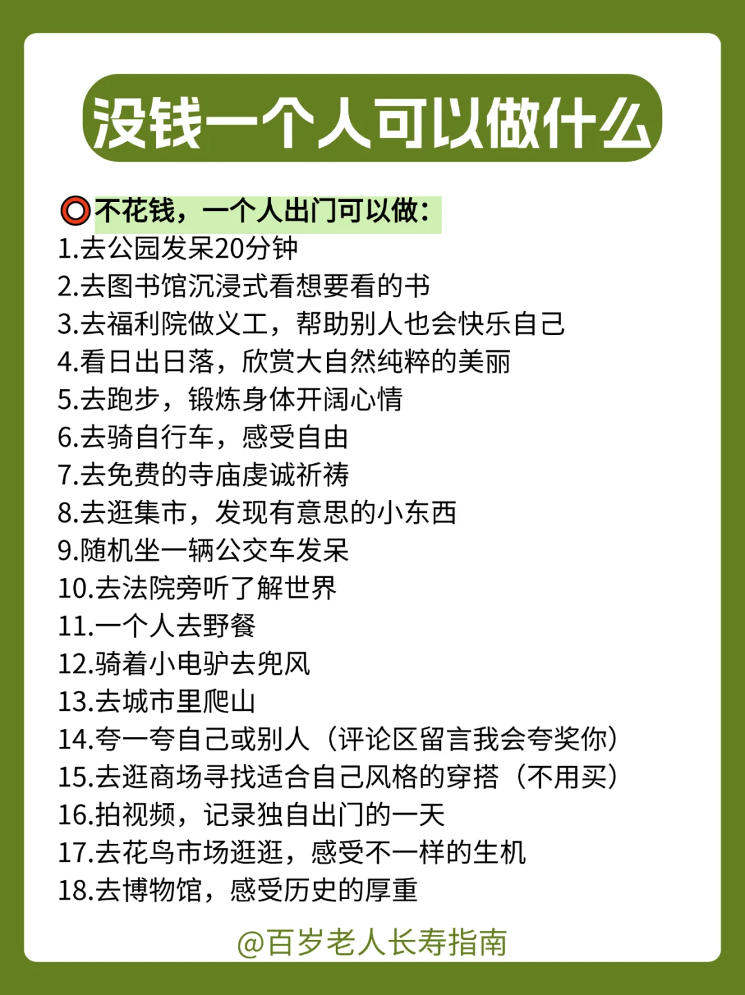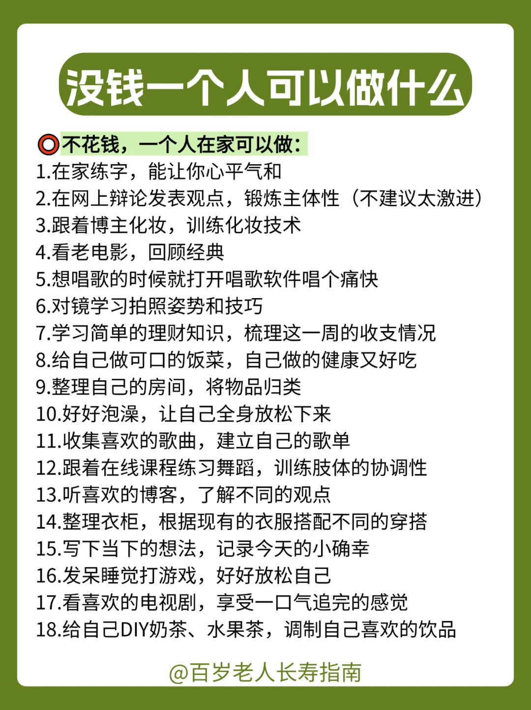 哪怕没有钱,只有一个人,生活也能过得很有意思~ 高质量的独处胜过低质量的陪伴~ 52件不花钱就能做的快乐小事,周末一起来逃离无聊生活吧~