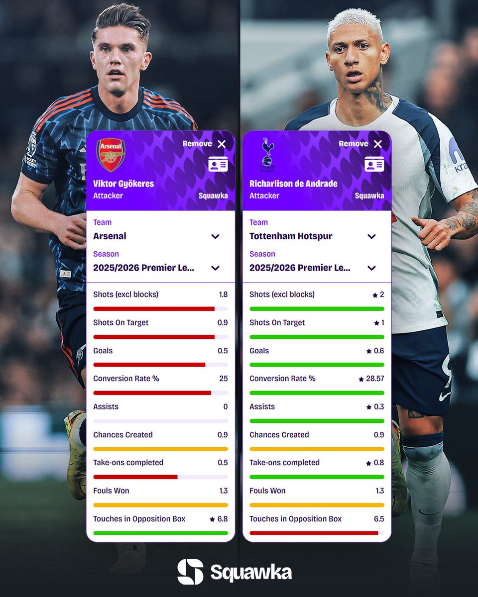 虎扑11月20日讯Squawka数据统计,对比哲凯赖什与里沙利松本赛季英超每90分钟数据表现:(哲凯赖什列前)