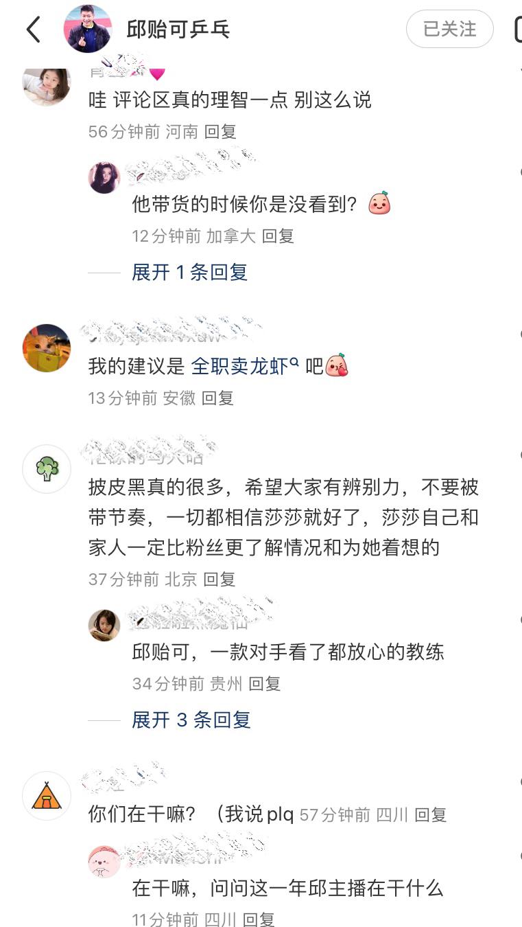 邱贻可发文向龙哥学习,评论区有点恐怖了。 全运会男单决赛,北京队战胜上海队, 时隔32年再次拿到全运会团体冠军。 其中马龙,王楚钦,黄友政三个人从头打到尾, 经受住了考验。 团体赛考核的就是整个团队的力量,少了谁都不成立。 黄友政前几天状态成谜,但是半决赛和决赛都表现的不错。 所以,还是要有耐心的,年轻人他总有不足的地方, 给他时间,只要自己不放弃。 自己刻苦的训练,就会让自己更出色。 有人说,为什么只发了马龙, 那是因为他和马龙同时打球的时候, 关系就非常好。 背着包在一起打闹的场景永远记得。 只是后来coco去做了教练,而龙队依然在打球。 所以,像龙队一样坚持到这个年龄,并且仍然打得非常好的,也就龙队了。 coco发文是正常的。 而王楚钦和黄友政,都算是coco的徒弟辈的, 他不会去祝贺任何人的。 但其实,最让人难过的是coco的评论区, 有很多的粉丝在阴阳coco, 其实呢,大可不必,他作为莎莎的教练, 无论过往他们多么默契,多么好,或者不好, 只要莎莎认可,莎莎相信, 都应该去支持, 顶级运动员她知道哪位教练更适合自己。 真正为莎莎好的,爱莎莎的人, 都应该去听莎莎讲, 而不是被小部分人带着节奏走。