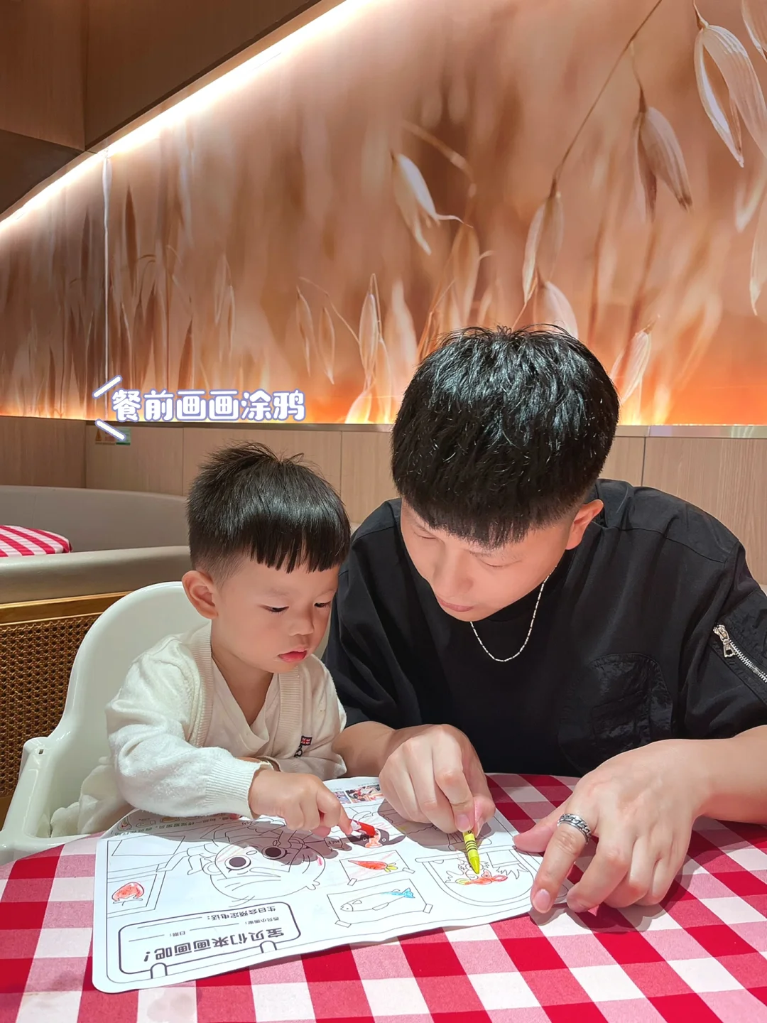 点餐后会给涂鸦餐垫和蜡笔🖍️画画