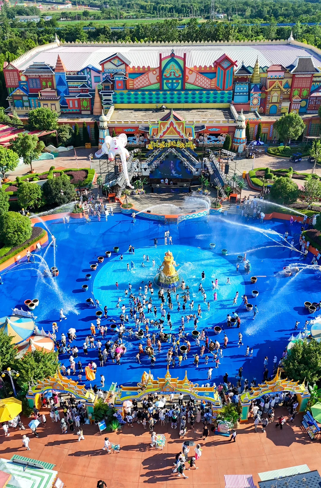 去年走过好玩地100站‼今年继续 第245站:荆州方特泼水狂欢节 期待了很久的荆州方特终于带小肥羊打卡了🍍 正好赶上了今年的泼水节💦 发朋友圈都以为我去了西双版纳!!! 泼水节、巡游、烟花🎆、各种表演让本来就好玩的游乐园更加有趣🌊 带娃轻松get!游玩攻略给到你们👇 ————————— 🍍出行: 🚗自驾:导航“荆州方特东方神画”,从武汉自驾过去大概3h🕐 🍍从武汉坐高铁到荆州站,车程1.5h左右,再打车到方特,大概15min 🍍晚上游玩结束有夜间班车到万达或者火车站,很方便 —————— 💦游玩攻略: 1⃣提前下方特旅游app,可以查看每个项目的位置和排队时长,一入园赶紧app预约《楚乐》《屈原》演出‼ 2⃣玩水的项目有《大禹治水》《星河穿越》,还有很好玩的民族泼水大作战(时间🕐:13:30、17:00)在缤纷华夏旁的泼水广场📍小朋友记得带上水枪、泳衣 3⃣进门口从右手边🫱开始游玩,小童能玩的项目很多,柯基跑跑车、牛郎织女等,室内项目很多,都有空调,对夏天出游很友好!记得带上零食、水、充电宝🔋 ————————— 🍍夏日限定: ✔梦幻嬉水大巡游(🕐时间:18:30) 路线:牛郎织女➡伴你飞翔➡节庆广场➡大禹治水 ✔烟花秀(🕐时间:20:45,以现场为准,有时候会调整)📍神州塔湖面 这次去看到了心心念念的许幻山同款蓝色烟花‼还是蛮震撼的,据说七夕节还增加了无人机秀和天梯烟花,带娃看完烟花可以在周边住一晚,第二天吃了荆州美食再返程 ✔星光音乐嘉年华(🕐时间:20:00) 📍节庆广场 现场很嗨,喜欢音乐节氛围的可以去前排蹦迪,节庆广场一圈都是美食店,吃完饭可以在那等着看表演 ✔夏日吃冰市集(📍伴你飞翔门口) 冰淇淋市集,小朋友喜欢逛,降暑配色很清新 ————————— 夏日泼水狂欢节时间一直持续到8月31日 营业时间每天都是9:00-21:00 白天夜晚都有不一样的氛围,玩一整天很充实