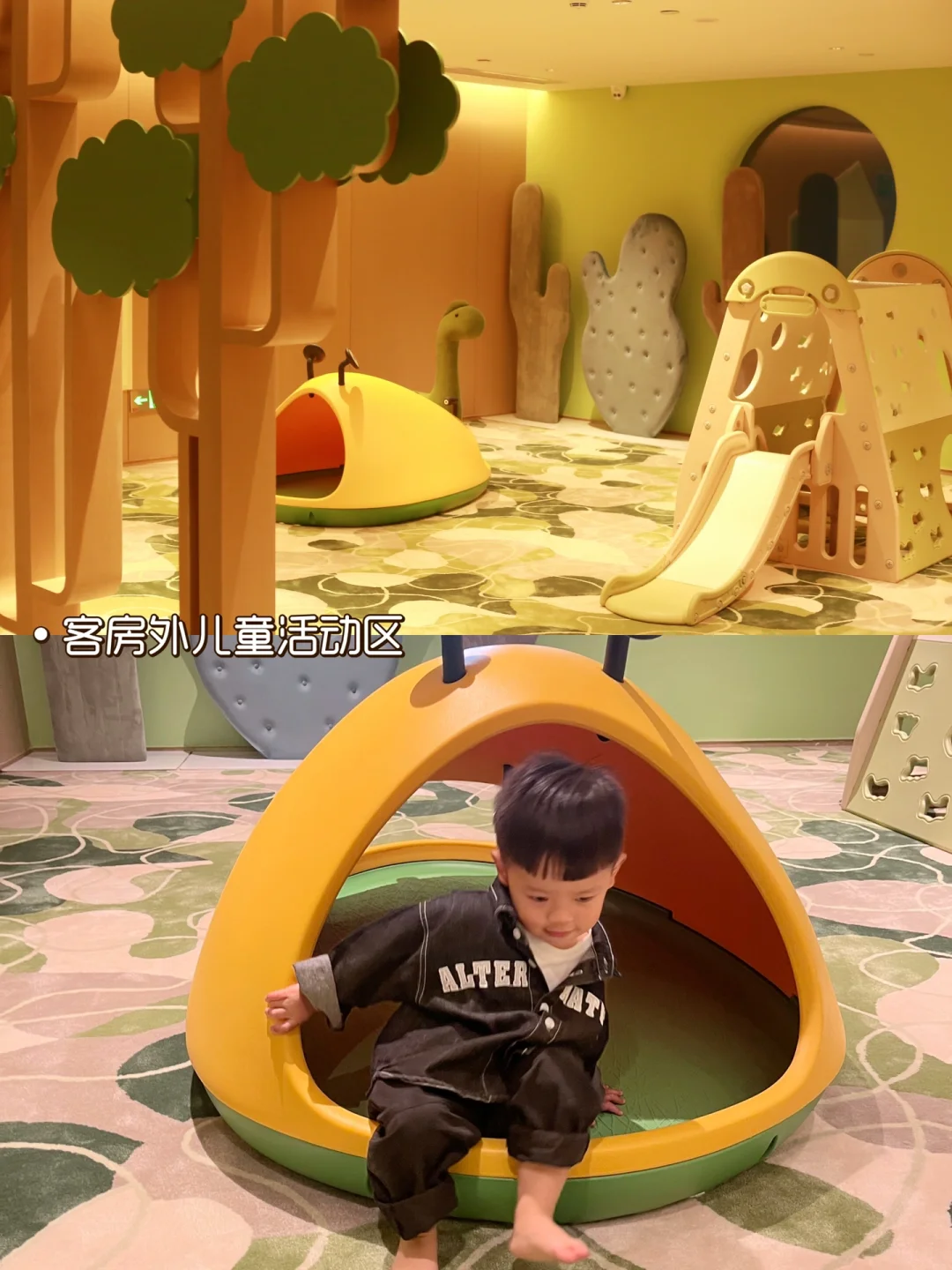 ⚽️玩:️房间已经很好玩啦,我们定的房间还有一个小树洞可以攀爬,每层楼的公共区域都有小型游乐场,我看到小朋友们都是玩的不肯走🤣