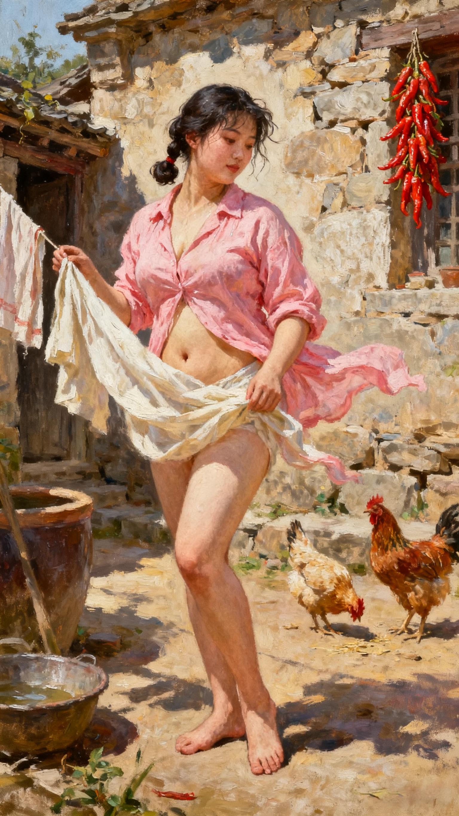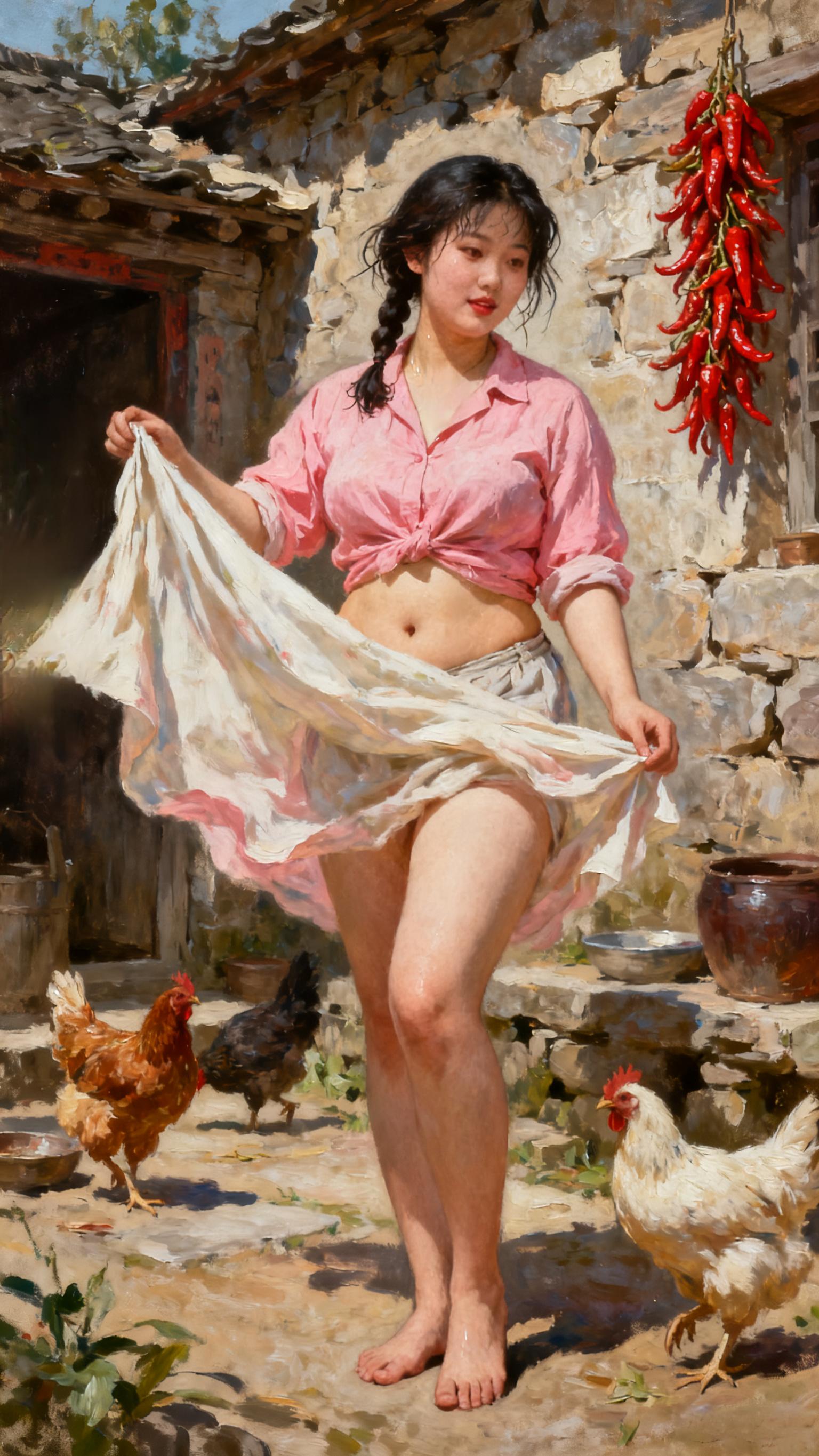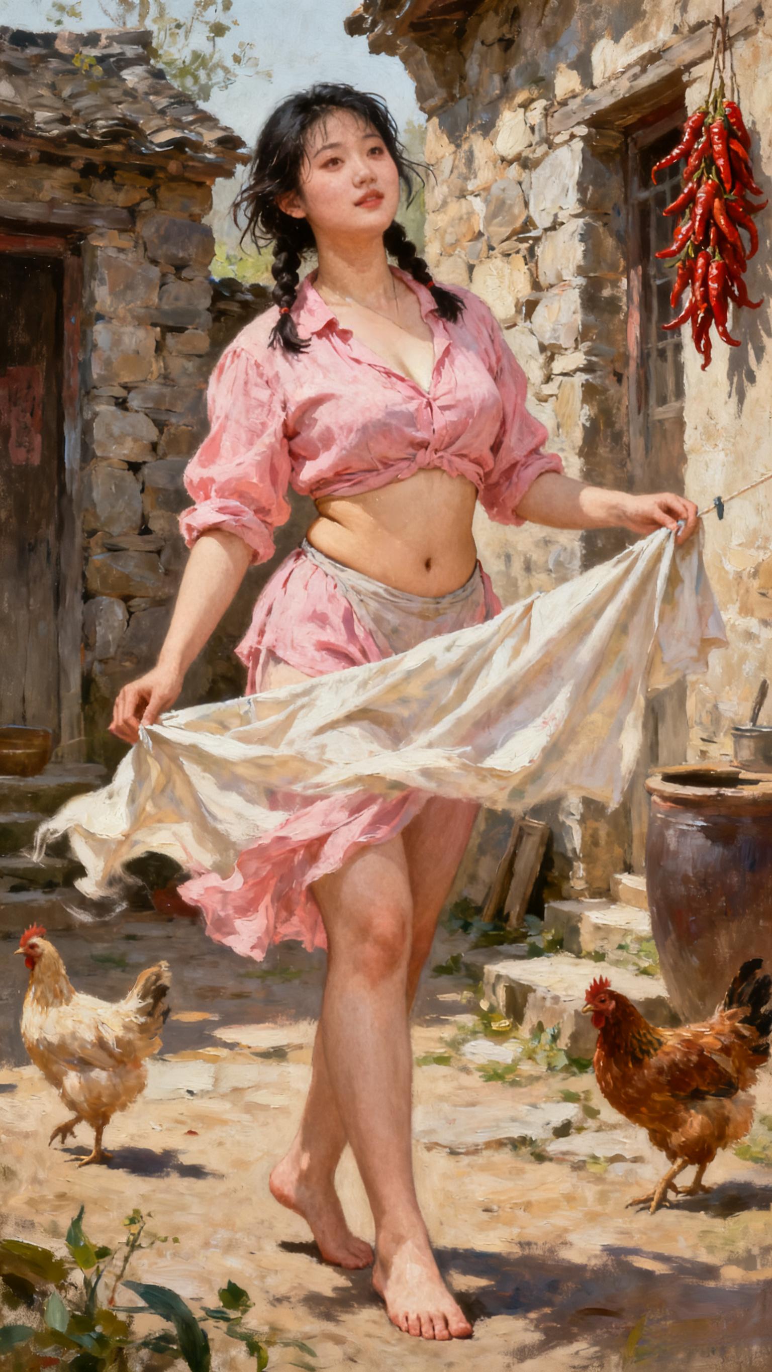 用即梦AI生成高市早苗的图画,提示词是:写实油画风格,描绘一个女人,脑袋被驴踢了