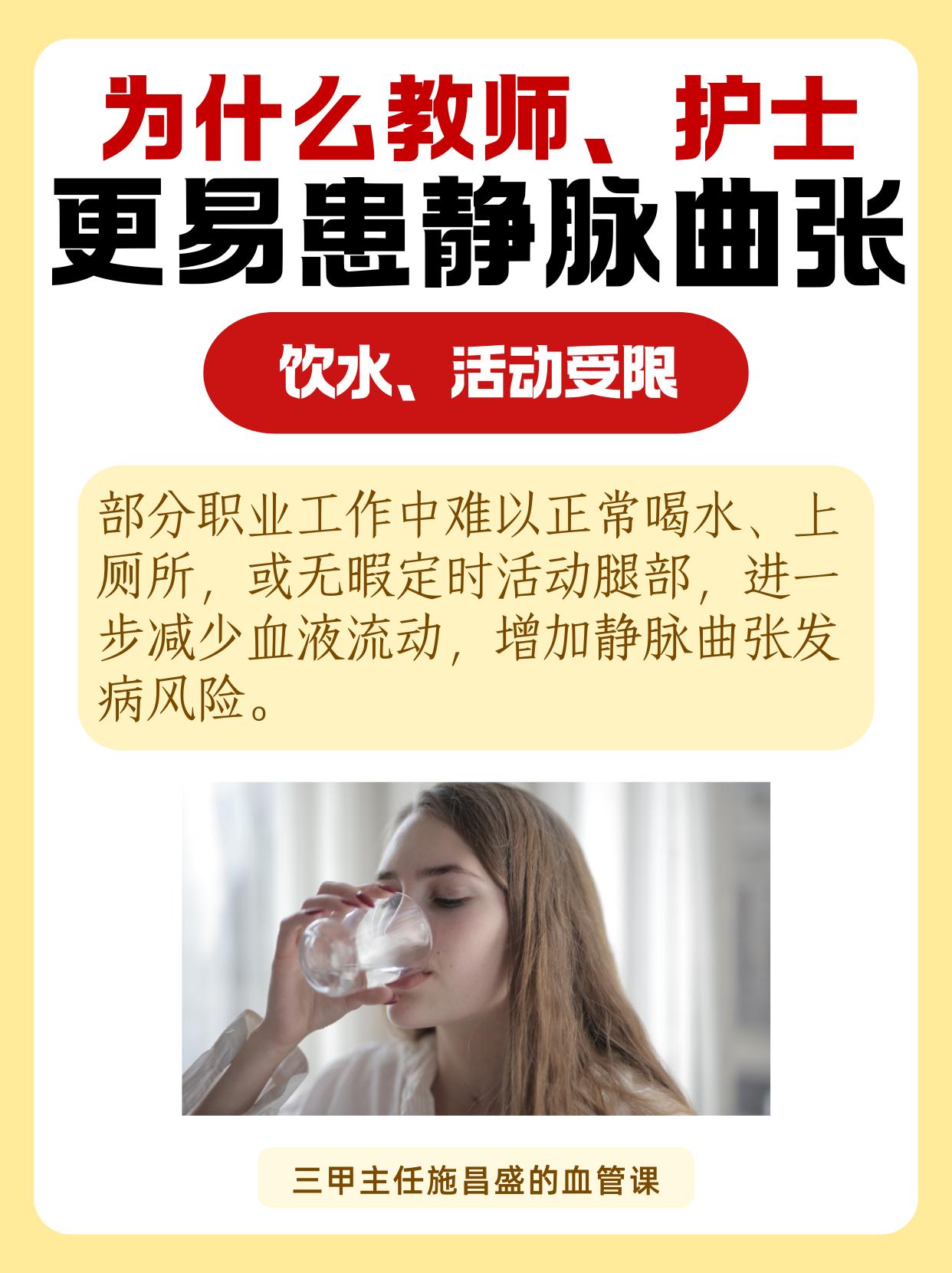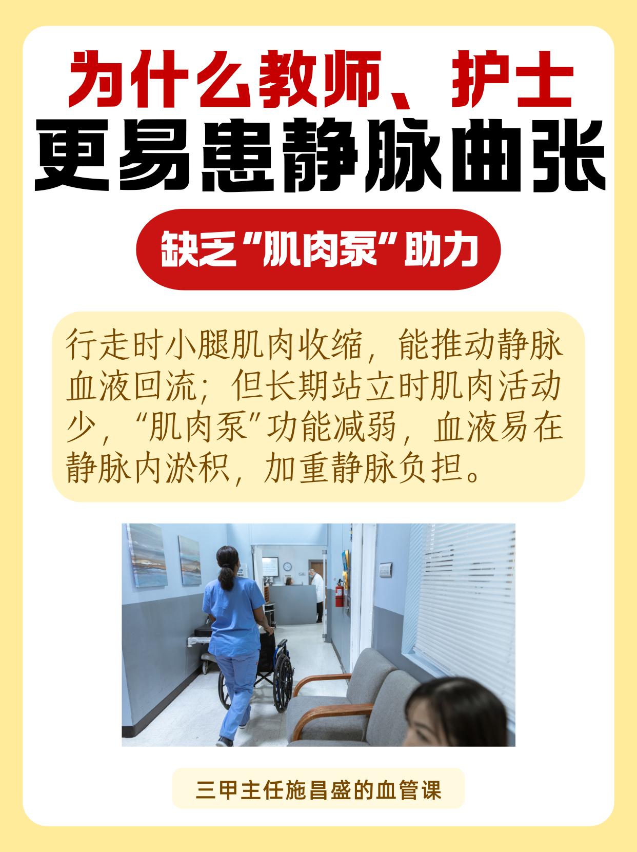 为什么教师、护士更易患静脉曲张。教师、护士、导购等需长期站立的职业,是...