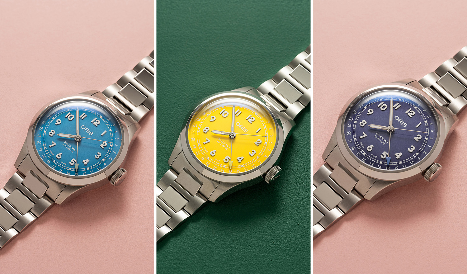 品牌亦带了更具性价比的表款选择。新款40毫米的大表冠指针式日历腕表有三种表盘颜色可供选择——暖⻩⾊、翠蓝色和淡紫⾊,均配有一条全新的运动型金属表链。这一表款搭载高质量的Oris754普通机芯,提供41小时动力储存,该机芯多年来一直为大表冠提供动力。