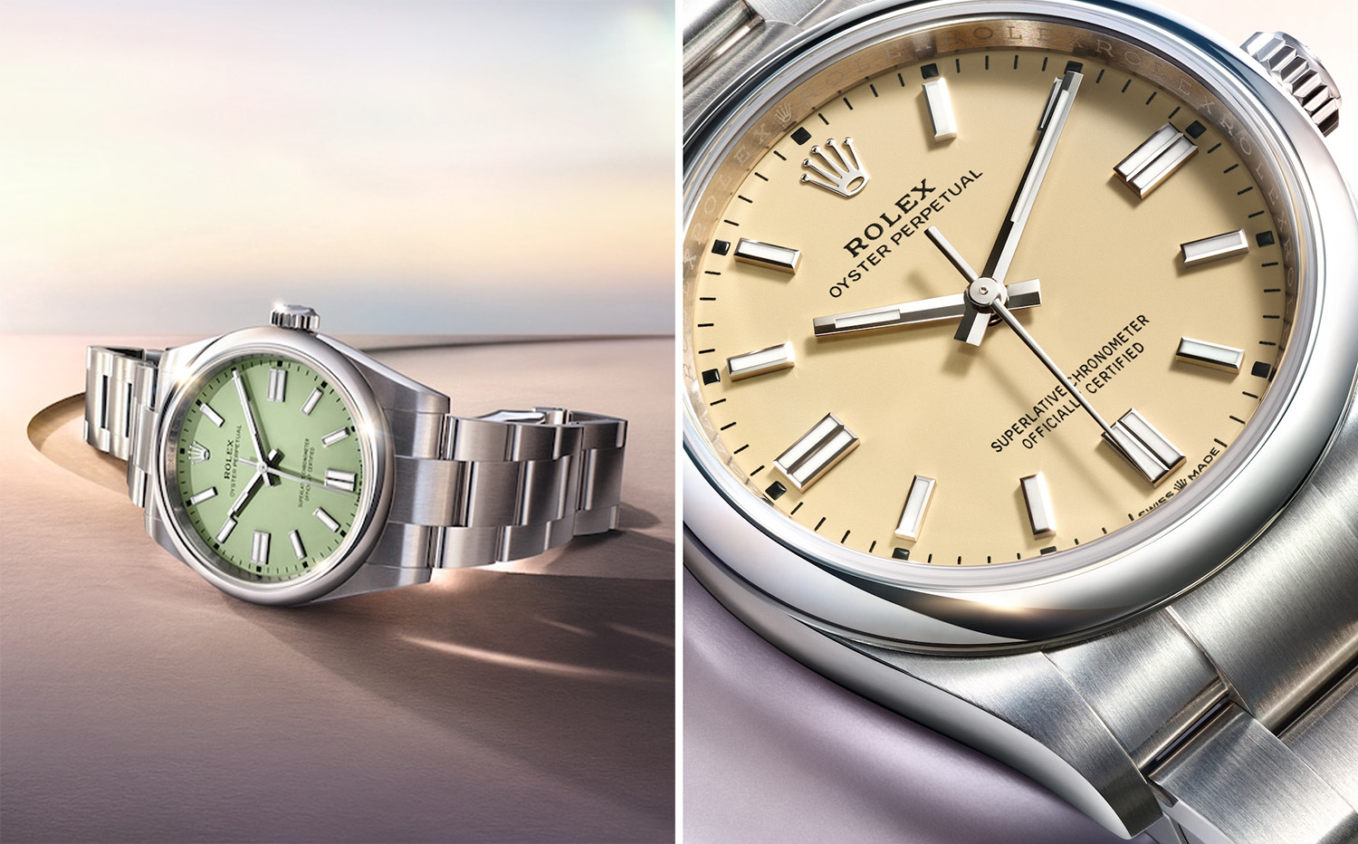 劳力士推出柔和淡雅粉彩色调的漆面表盘,为素以丰富新颖表盘著称的蚝式恒动型系列再添力作。薰衣草紫、沙米色或开心果绿等新款漆面表盘呈哑光效果,分别搭配于28毫米、36毫米及41毫米等焕新设计的蚝式表壳中,并配备纤薄的蚝式带扣,线条比例更为和谐悦目。其中,蚝式恒动型28搭载2232型机芯,而蚝式恒动型36与41均搭载3230型机芯。这两款机芯精准显示时、分、秒,且均获超卓天文台精密时计认证,确保表于佩戴时能发挥超卓性能。