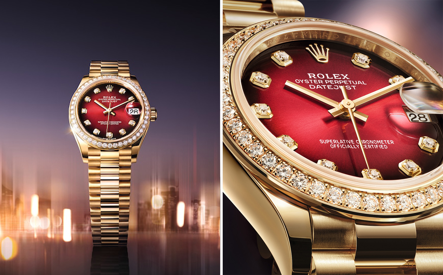 新款腕表采用18K黄金材质,配备了基于PVD工艺制成的渐变红表盘,表盘点缀10颗镶钻时标,外圈镶有46颗圆形钻石。表盘呈现光影交织的效果,而边缘暗色过渡在外圈及表盘上的镶嵌钻石烘托下更加美妙。日志型31搭载2236型机芯,可精准显示时、分、秒及日期,搭配元首型表带及隐敞式皇冠带扣。