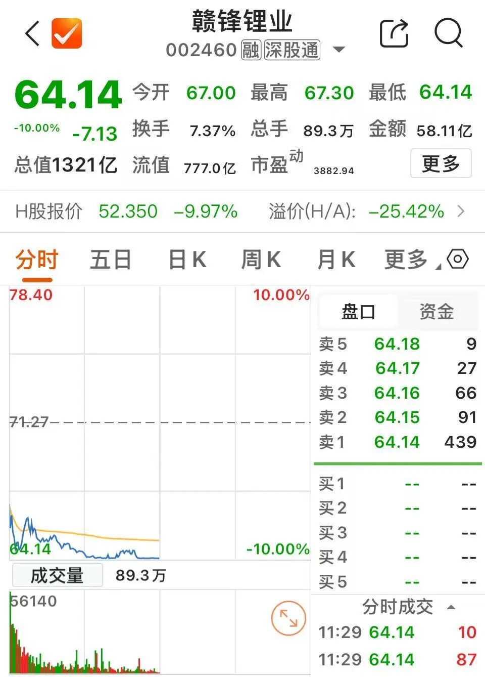 A股市场中,锂电池板块早盘遭遇重挫,赣锋锂业、大中矿业、西藏珠峰、佛塑科技等多股跌停。