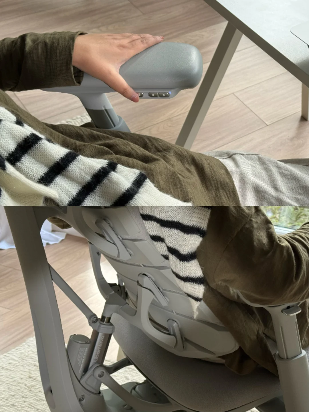 让我惊喜的是它的千背适配技术,每个人的腰背曲线都不一样,强行顶腰反而会加重负担。这把椅子的一体式柔性椅背像有记忆似的,能精准贴合我的脊柱曲线,腰背贴合椅背,头颈贴合颈枕坐再久也不会有空腰的悬空感,更没有生硬的顶托感,就像被稳稳托住的同时,又能自在活动。