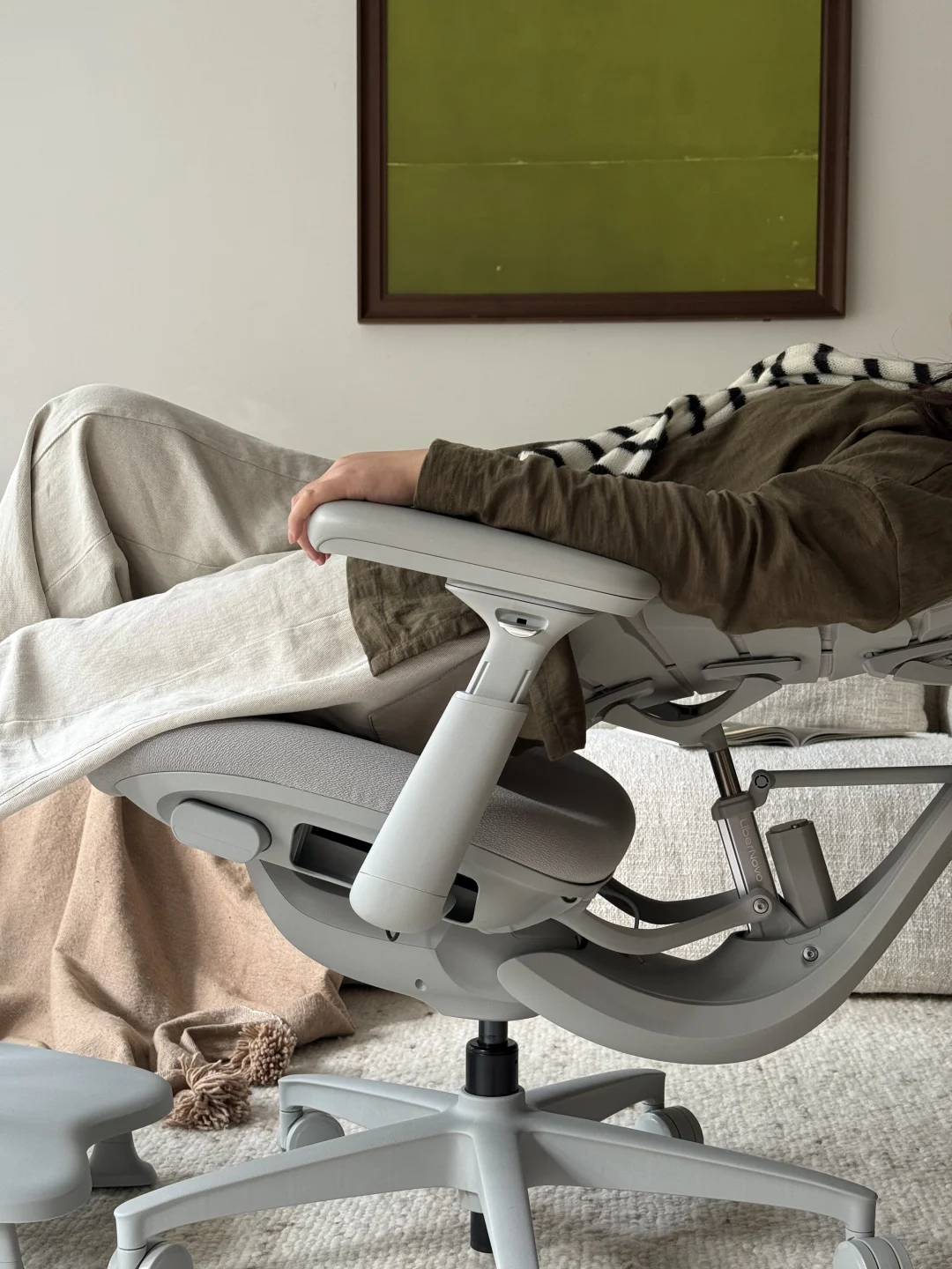 开始选椅子纠结,既想要硬核的护腰功能,又怕工业感太强的工学椅破坏家里柔和的氛围。遇到这把椅子才知道,功能与颜值真的能兼顾。它的设计没有多余棱角,低调的配色和流畅线条,往客厅床边一放,或是挪去卧室搭配阅读角,都能和周遭环境自然相融,不突兀却自带质感,像天生就该在这里。