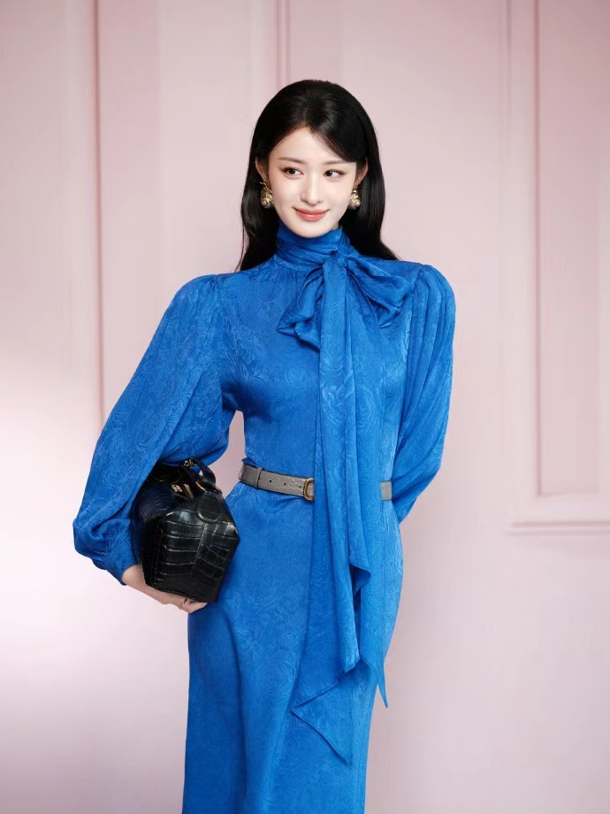 王楚然蓝裙复古摩登,就这个王楚然美啊,优雅摩登气质狠狠拿捏了~