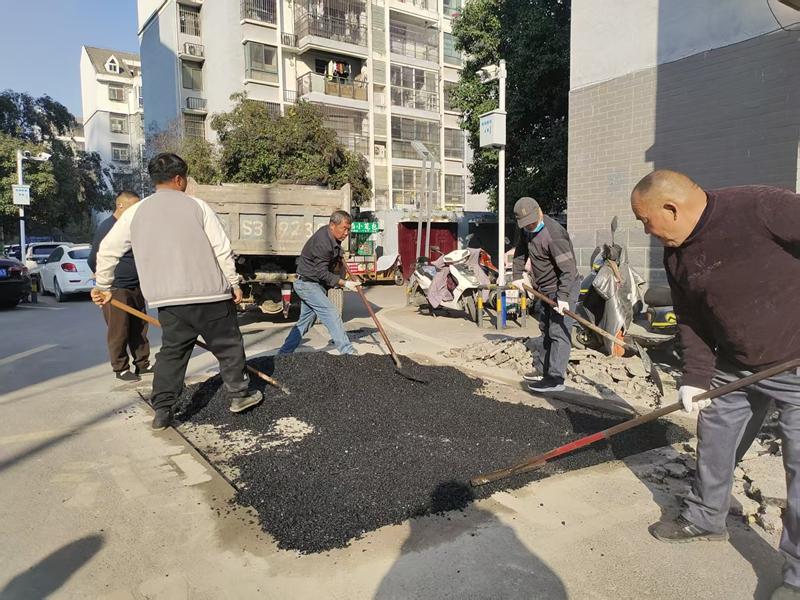 得到回复后,第一社区管理中心菊花园社区按照“圆洞方补、浅洞深补”的修复原则,在需要路段摆放路面警示标识,采用铣刨机把原有破损路面切割、铣刨、清理干净,重新喷洒乳化沥青和摊铺新沥青,并对新铺设沥青进行压实及打凿平整,确保修复后路面美观、耐用。