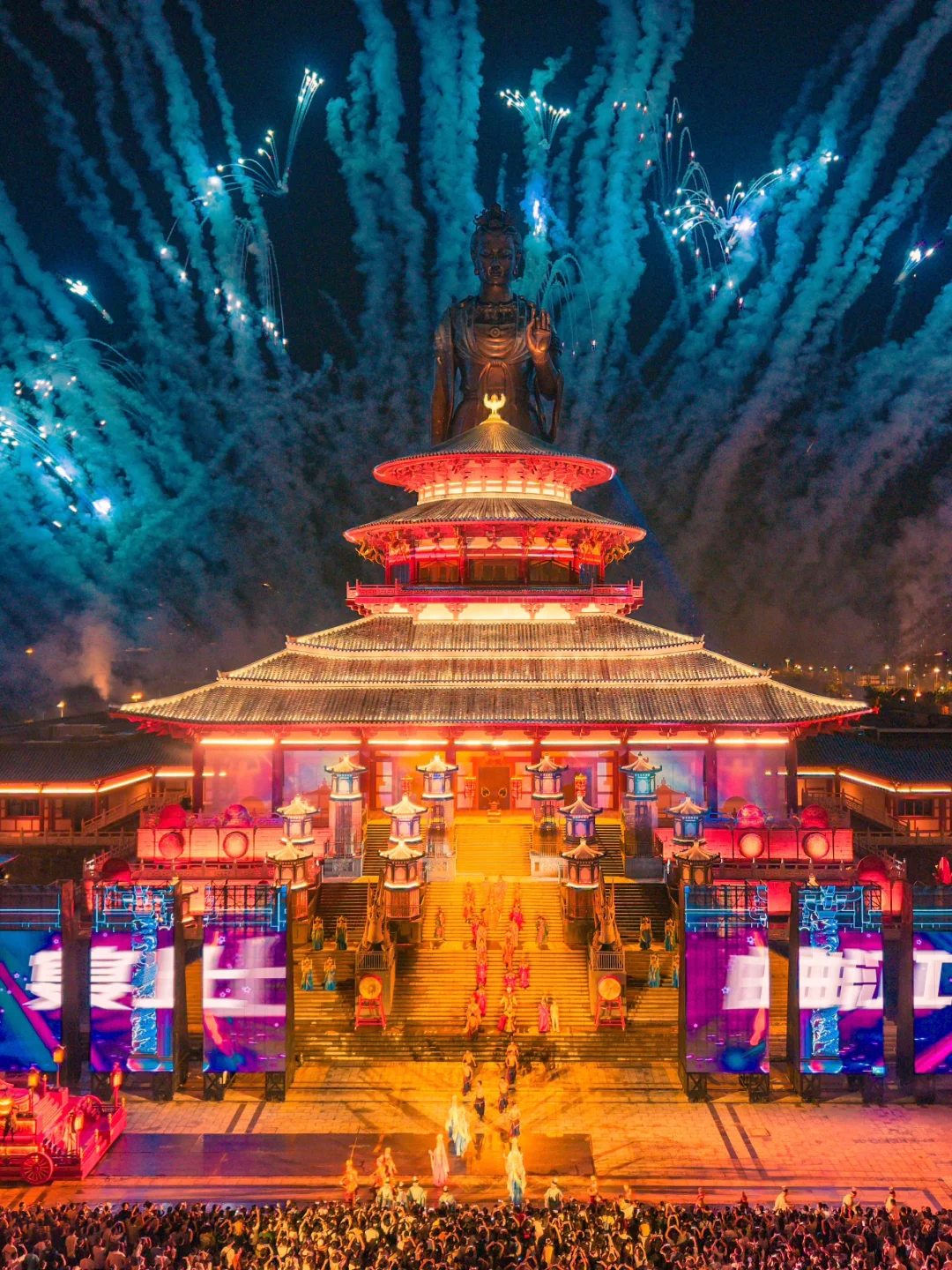2000㎡移动舞台的实景大戏,再现盛唐状元高中场景➕漫天星火烟火秀真的很浪漫!