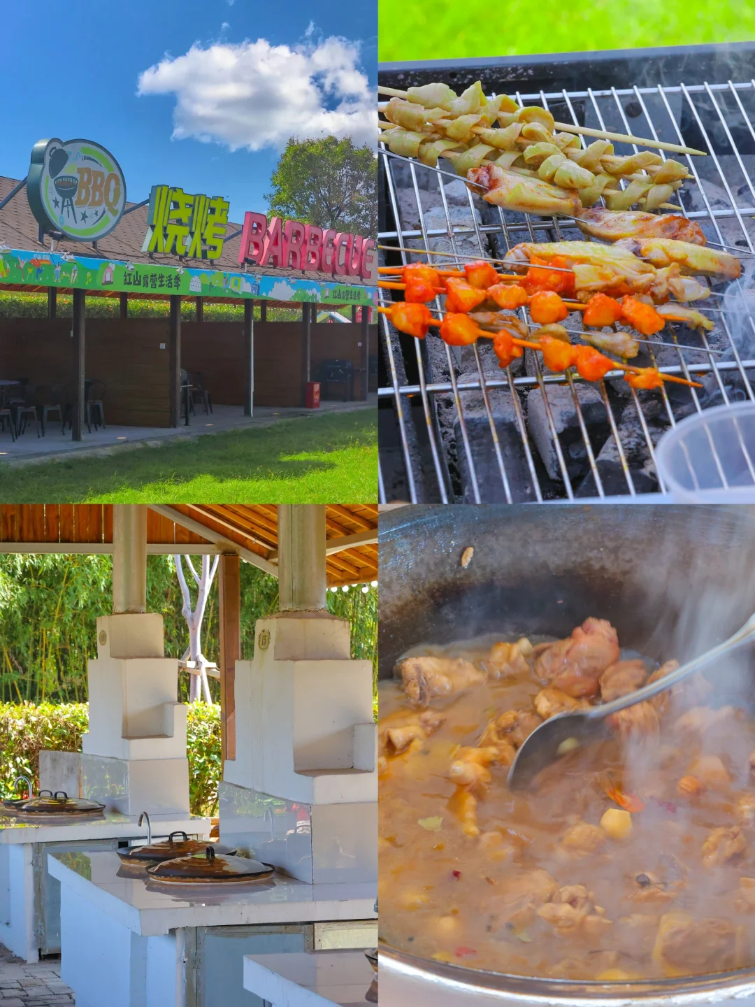✔️露营基地可以烧烤BBQ,还有大灶土鸡可以吃,很香很美味👍