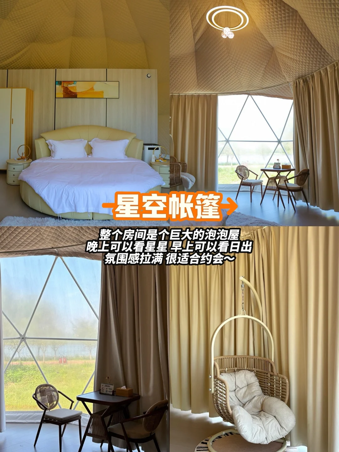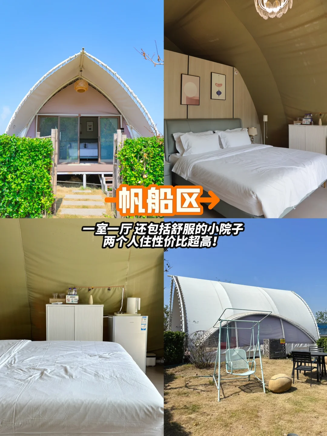 营地⛺️提供3种住宿房型,有帆船(适合朋友年轻人)野奢(二个房间,适合亲子家庭)和星空帐篷(适合情侣,很浪漫)3个房型都设计的很不错,不仅各有风格,住宿都很舒适哈!