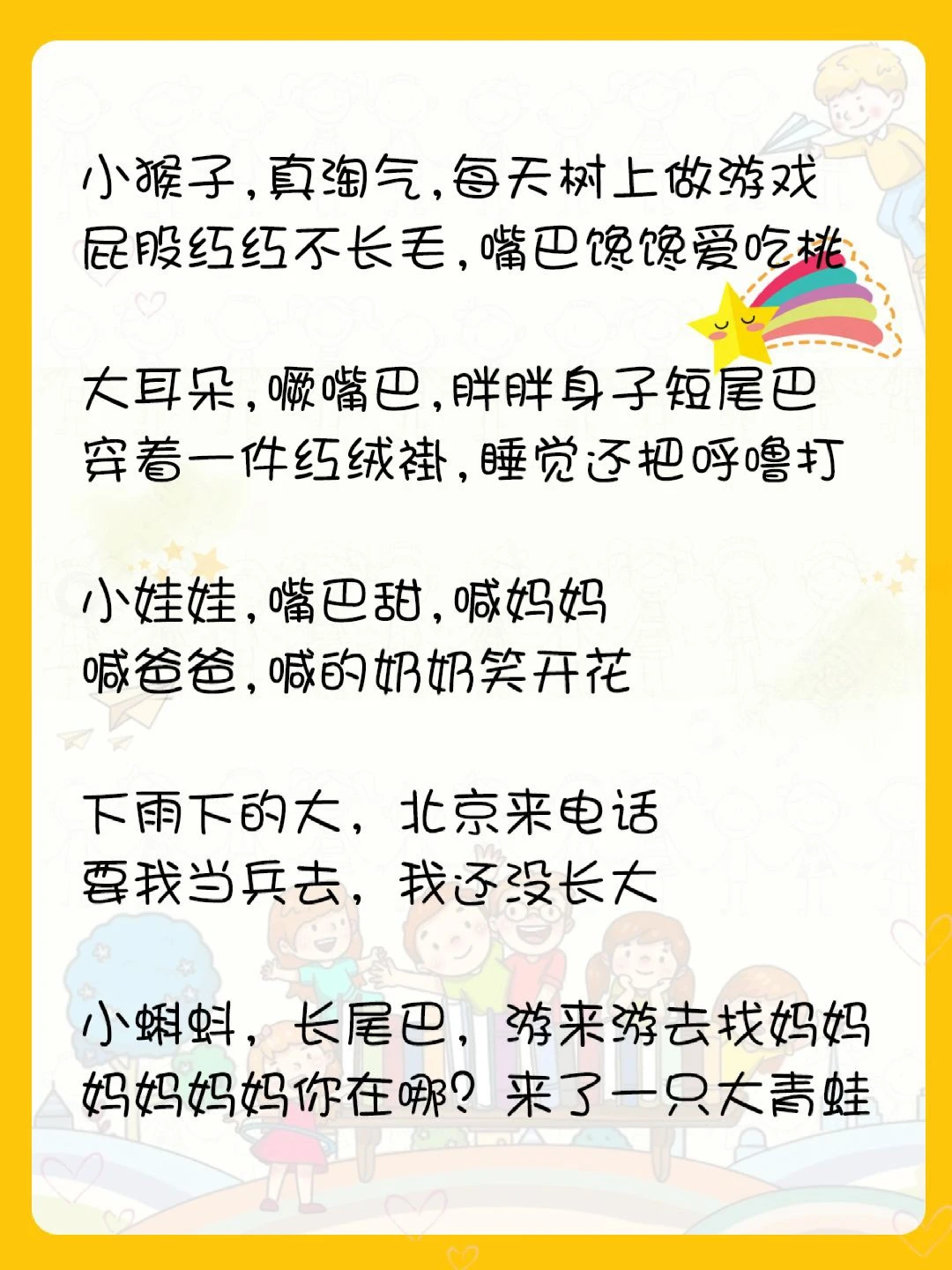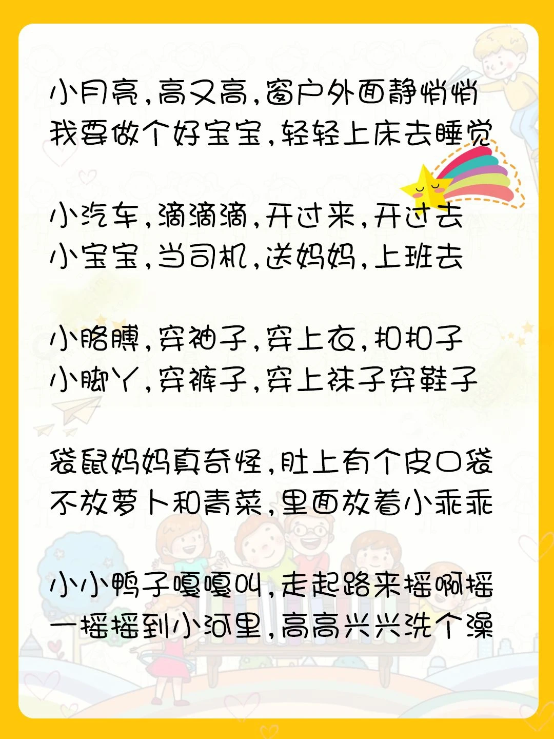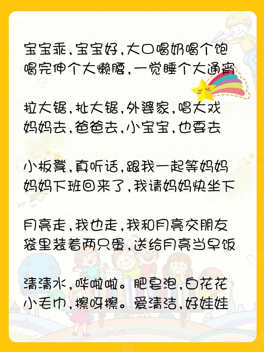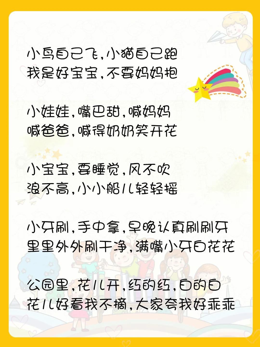 💁1-2岁是宝宝的语言敏感期,有节奏的顺口溜可以让宝宝更早开口,产生沟通意识,对大脑的发育也有帮助。 . 👶另外,也可以在睡前读给宝宝听,使宝宝快速入睡。 . 这30首早教顺口溜都是简单易学的,建议收藏~