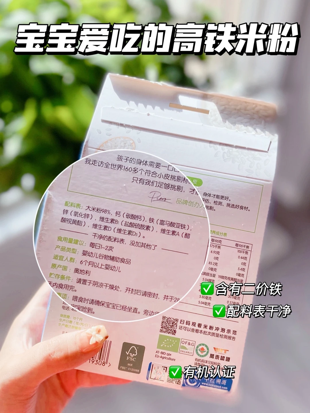 像我们家宝宝6个月时,就开始添加小皮米粉了,看中的就是小皮的配料表干干净净,只有大米一种食材,以及宝宝发育所必需的钙铁锌、维生素等营养元素,不含八大过敏原,冲泡起来也细腻顺滑,很适合作为第一口米粉,宝宝吃完也没有过敏~