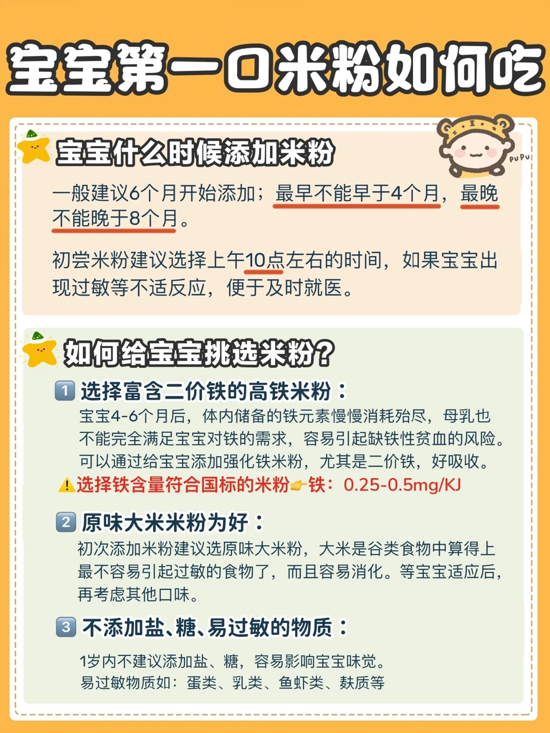 宝宝的第一口米粉,到底要怎么吃,怎么选?很多新手妈妈担心给宝宝添加辅食后会出现过敏的情况。今天手把手教大家如何正确添加高铁米粉,做到正确喂养和排敏!建议保存好转给婆婆看,便于科学喂养宝宝!