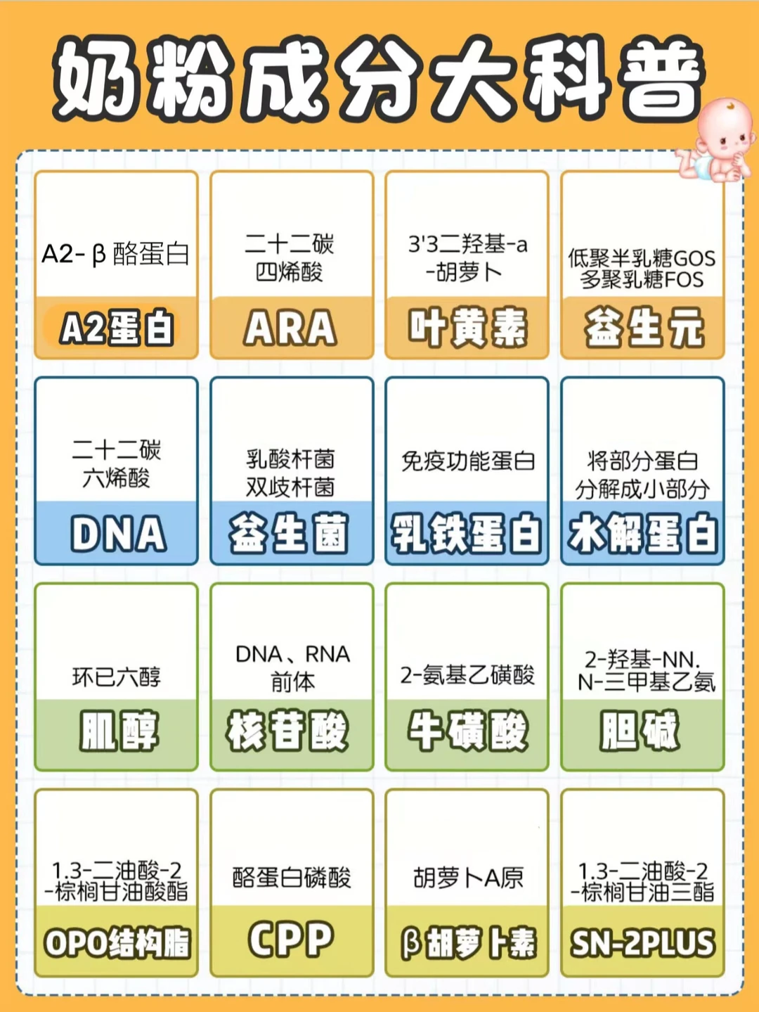 👍含有的A2-β-酪蛋白更亲和宝宝肚肚,宝宝也更容易吸收。OPO结构脂有助于宝宝对钙质的吸收,减少钙皂的生成,促进软便,保持宝宝小肚肚舒适,还有a-乳白蛋白促进铁、锌矿物质吸收,另外还有益生菌Bb-12和GOS+FOS益生元组合,双向呵护宝宝肚肚。