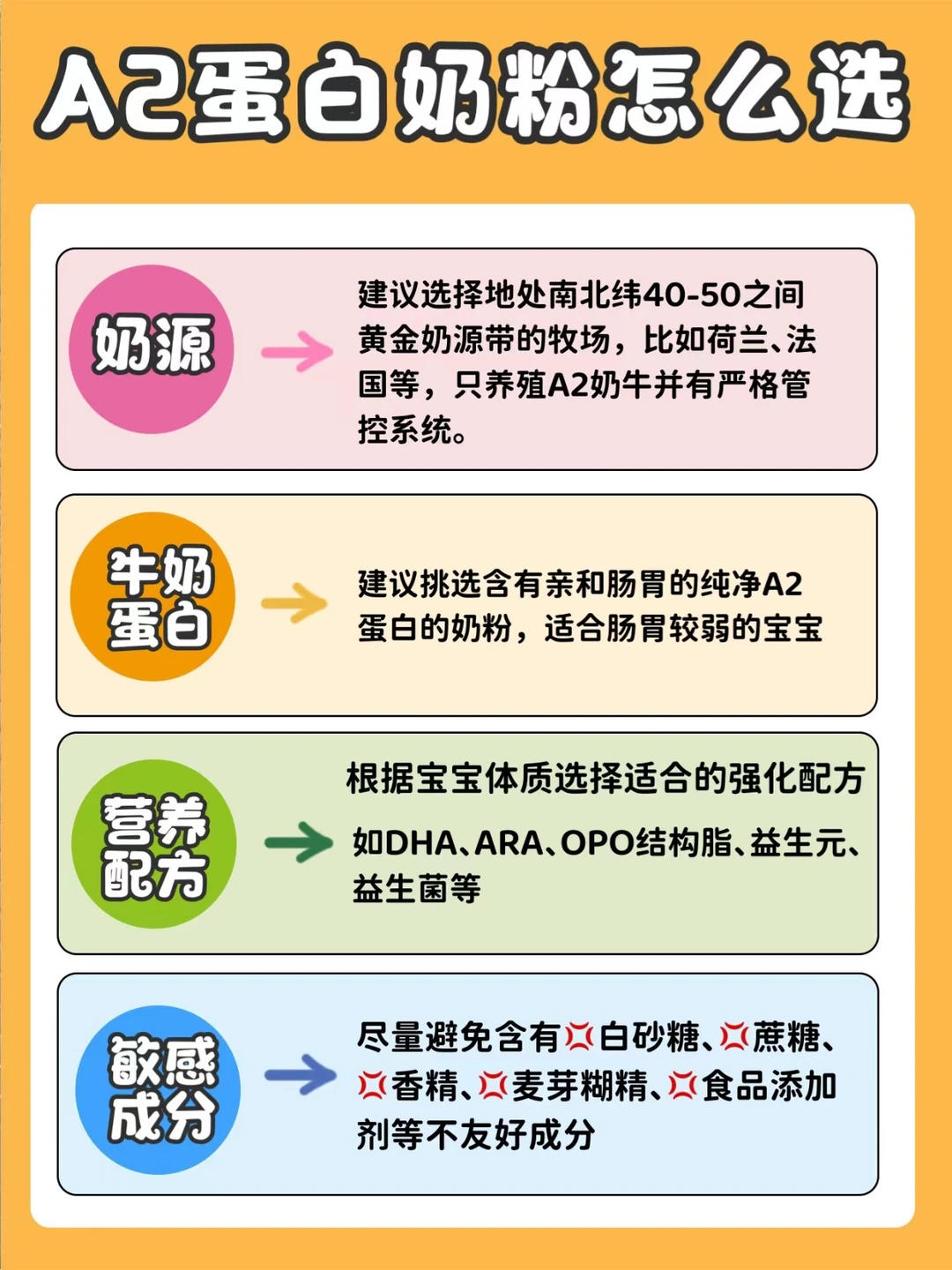 ②而A2-β酪蛋白则不会出现这个问题,如果宝宝属于玻璃肠胃,可以考虑A2奶粉。