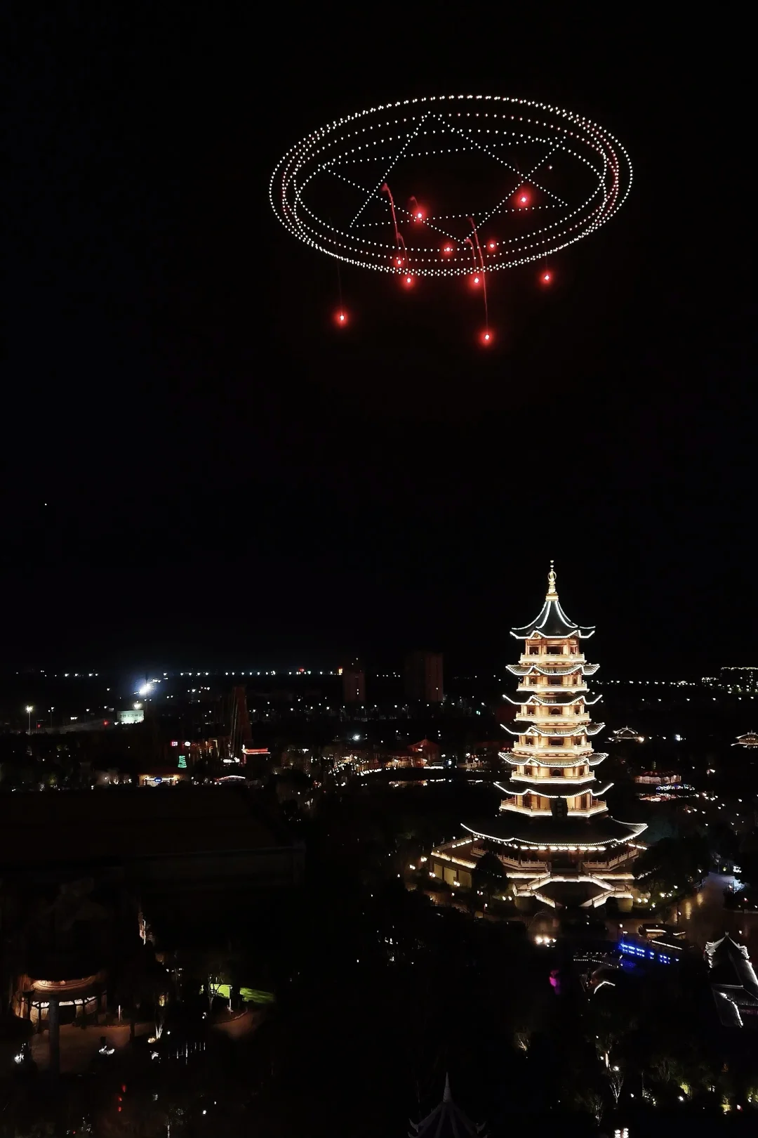 千架无人机表演,不断变换,时空之门、财神爷等画面🌃