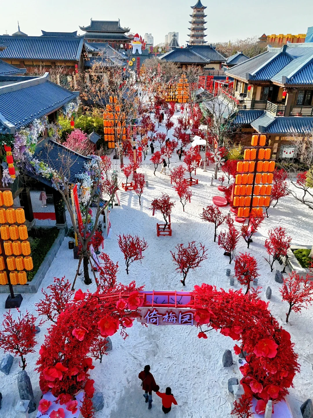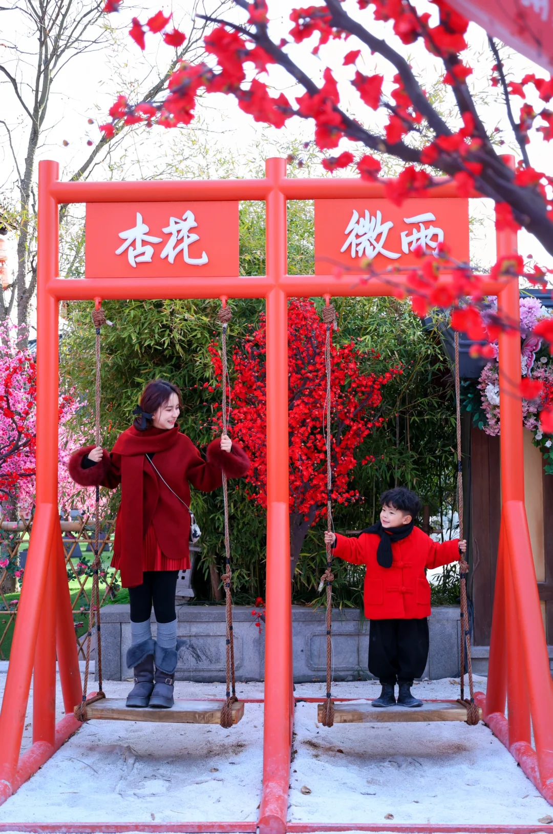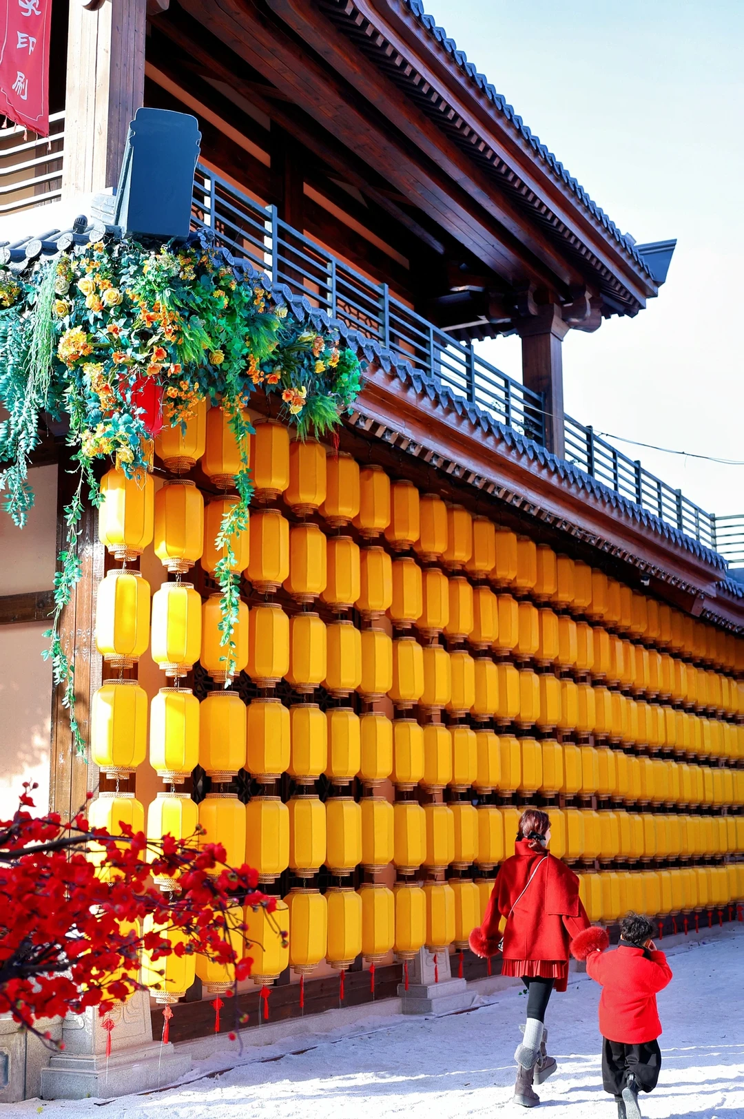 火红的梅花,重现甄嬛传里倚梅园场景🎬,穿上红色的新年服装,很出片‼️