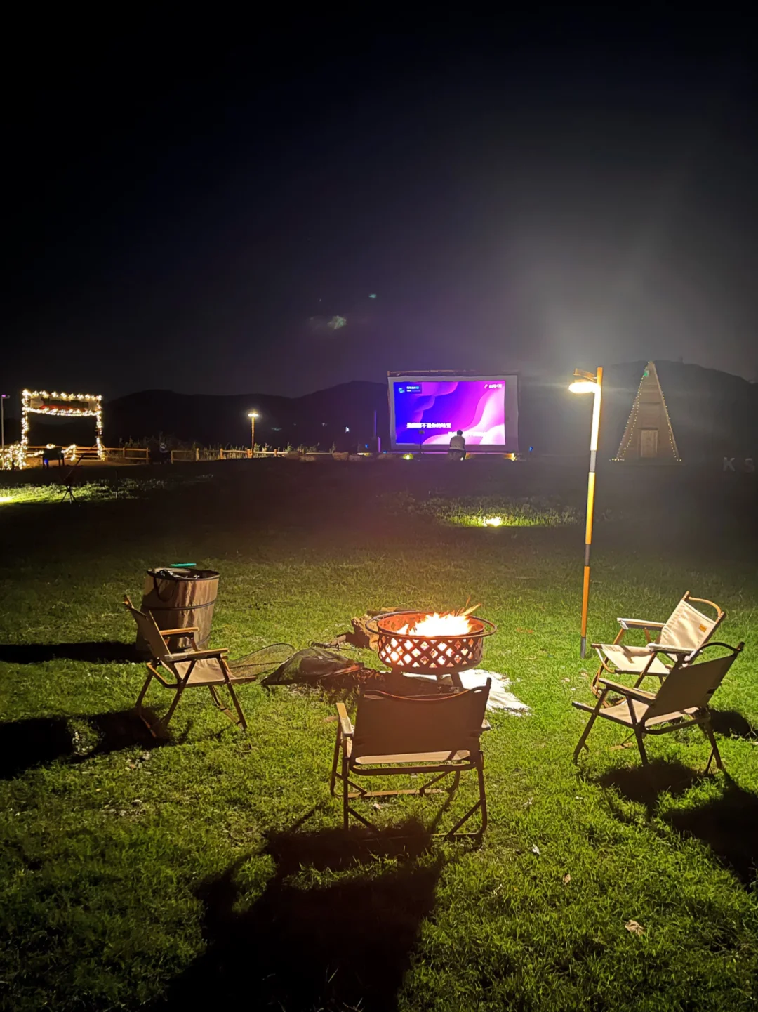 晚上的篝火晚会、露天KTV、露天电影🎬